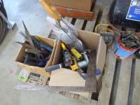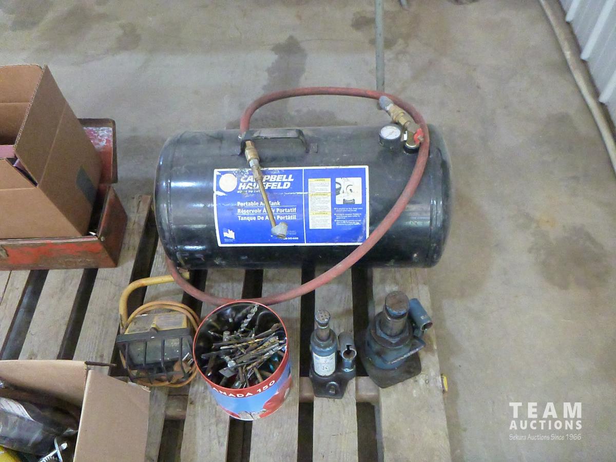 portable air tank, 2 ton jack, 12 ton jack, rivetors, squares, files, draw knife