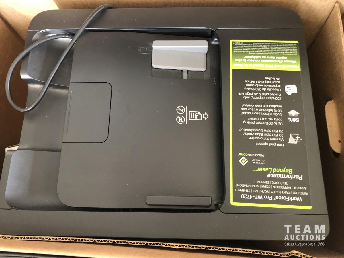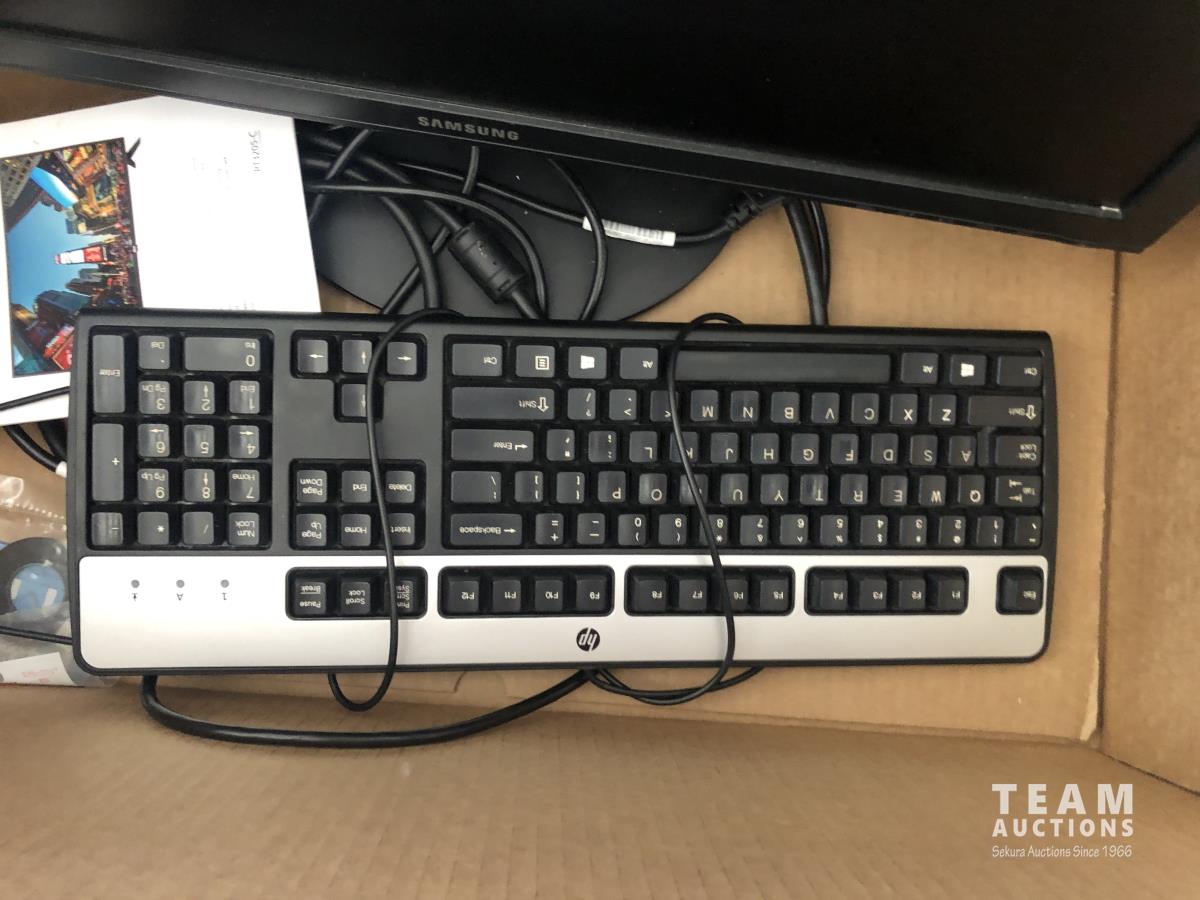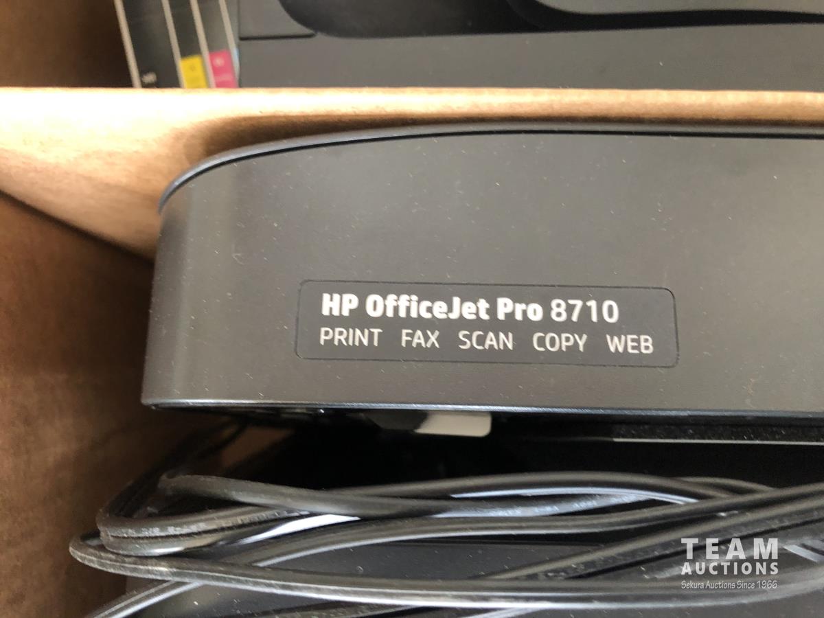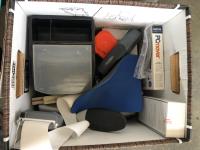 Miscellaneous office supplies, (3) printers, filing cabinet, computer monitor , keyboard & track lights