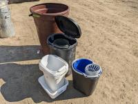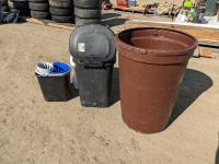 131 Rain Barrel & Various Size Garbage Containers