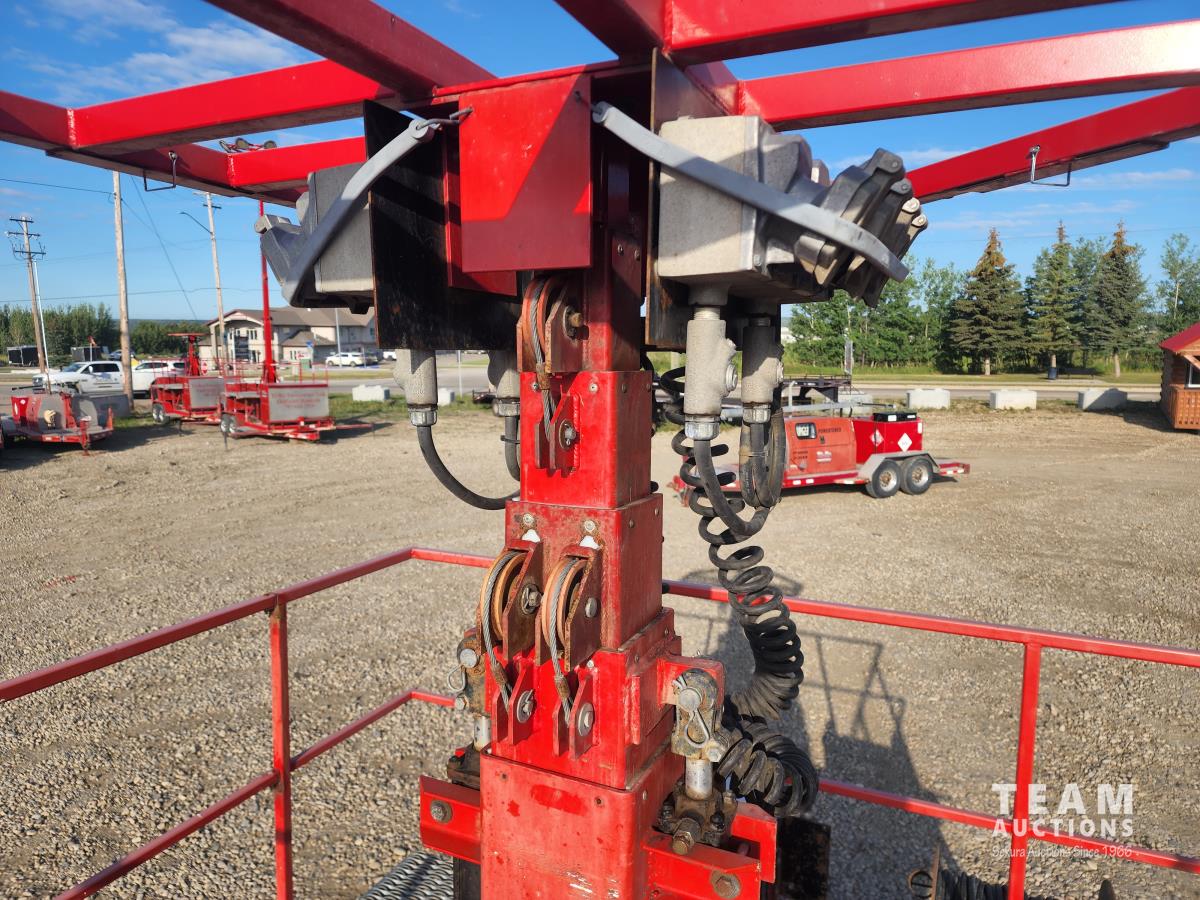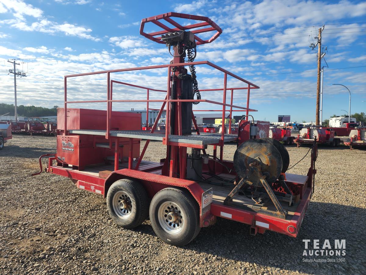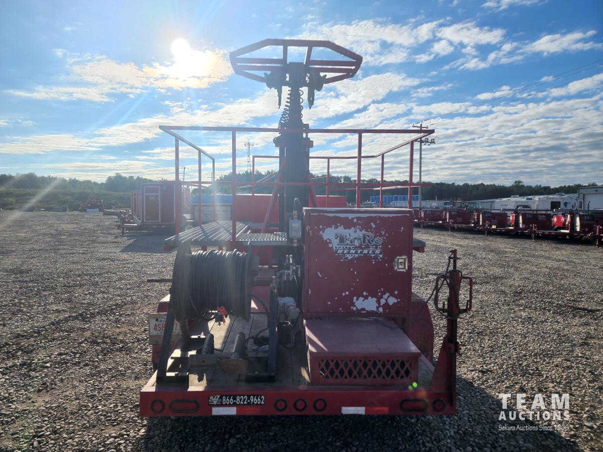 (2) 7,000 lb axles, 80 inch wide, torflex suspension, (8) lights, 235/80R16 tires on aluminum rims, 45 ft height, (8) LED lumen 26,000 watt lights, lights over a 400 ft circle, operates with 220 watt single phase power