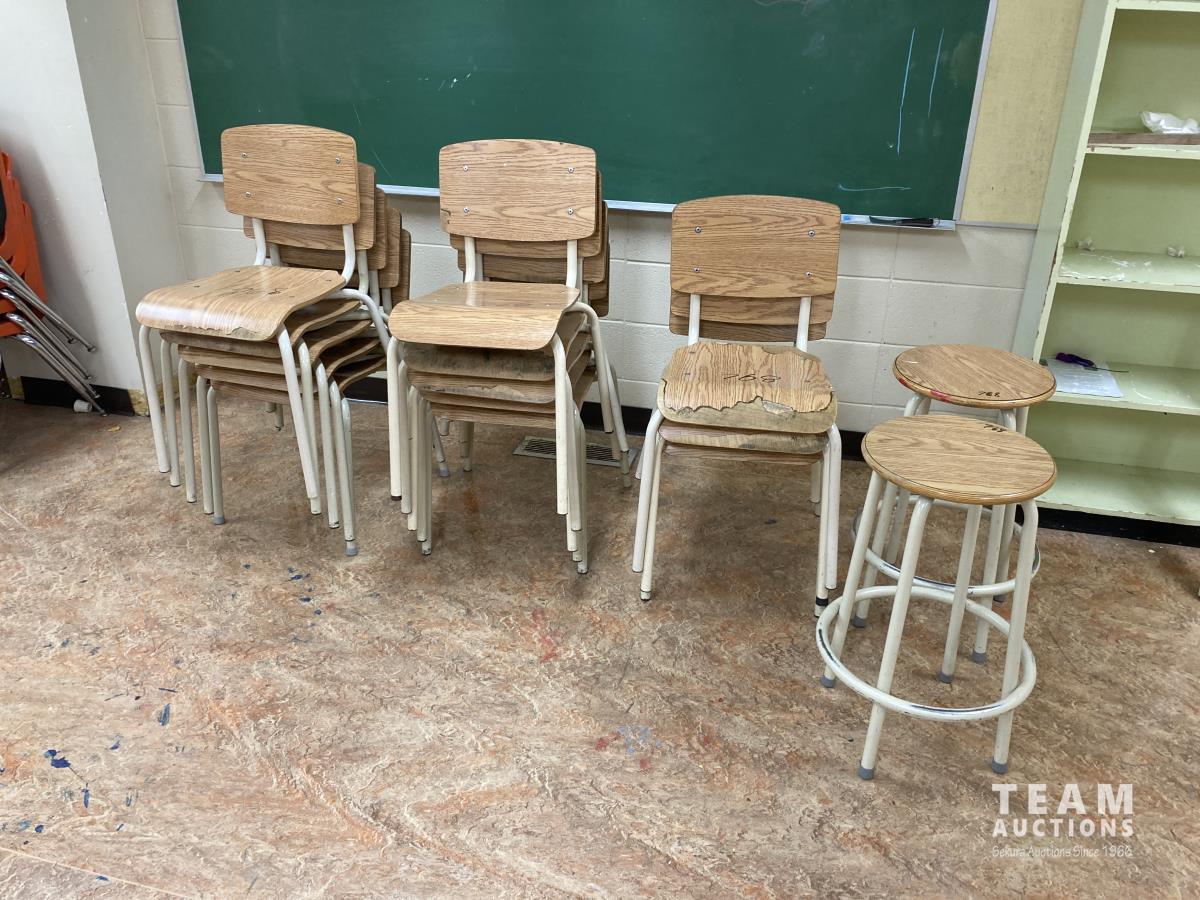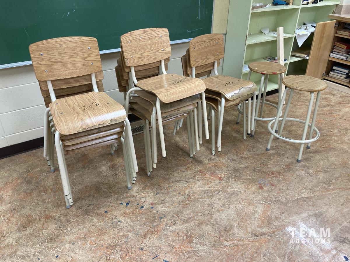 767 (13) Stackable Chairs & (2) Stools