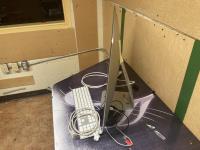 Located in viscomm room, Factory reset, late 2014 to mid 2015 model, screen is cracked, option to take with or without desk