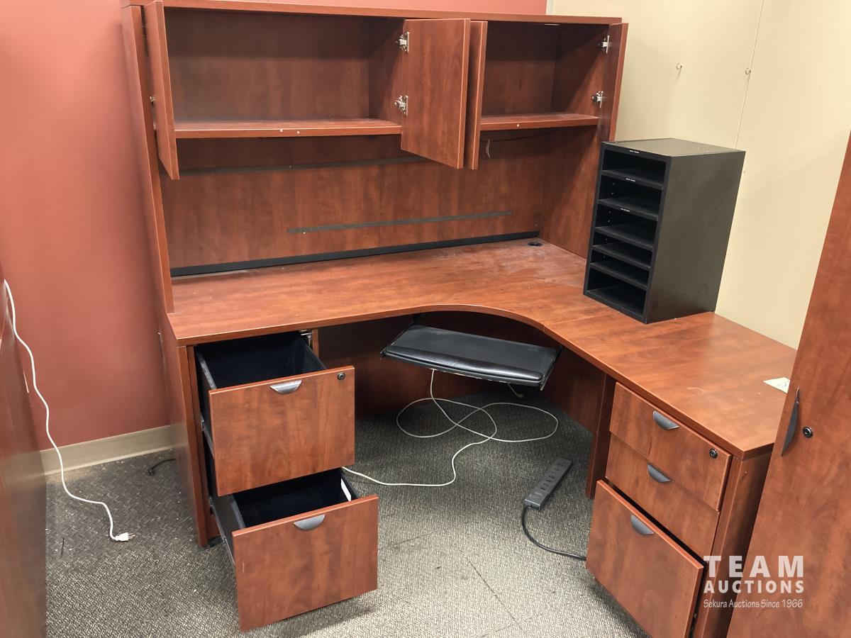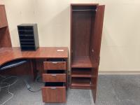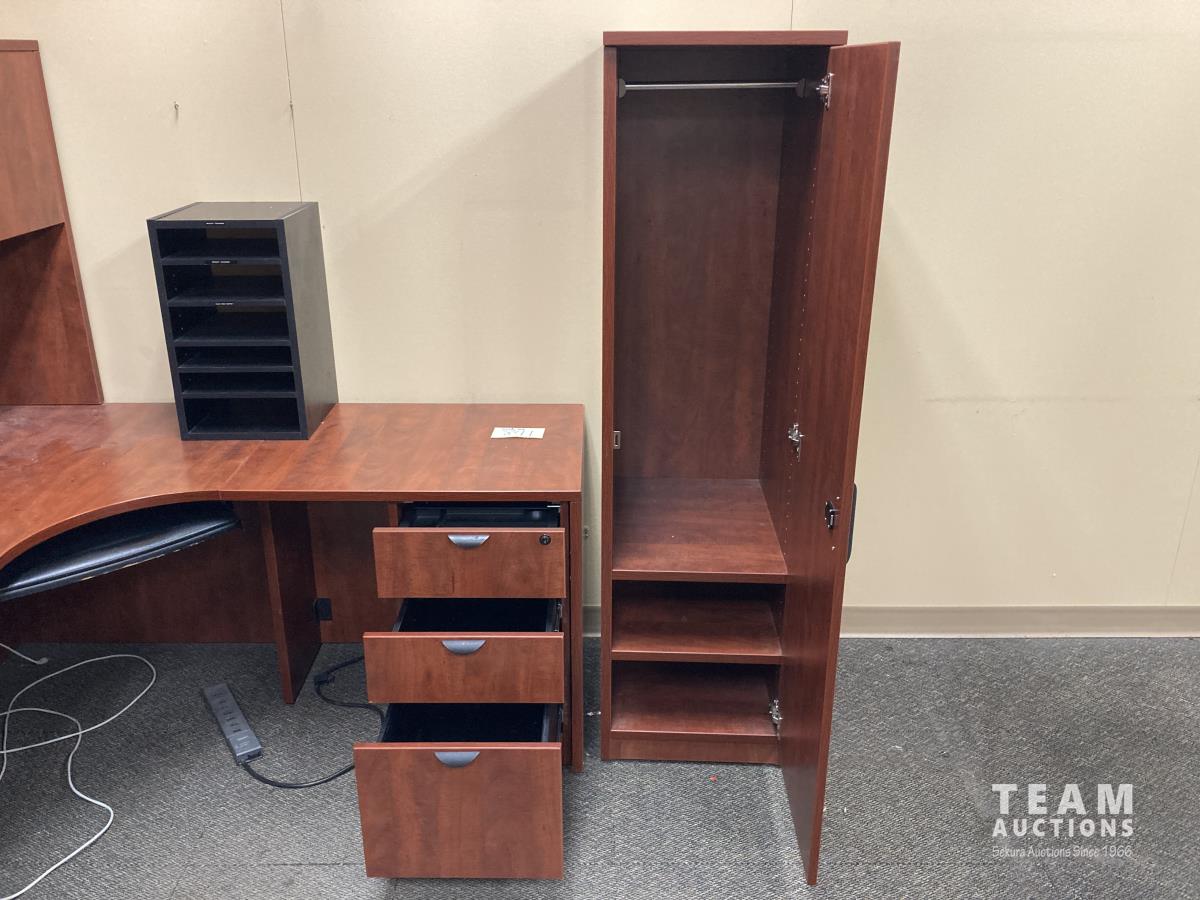 Desk approximately 24 inch x 66 inch x 65-1/2 inch, side cabinet is 24 inch x 18 inch x 65-1/2 inch