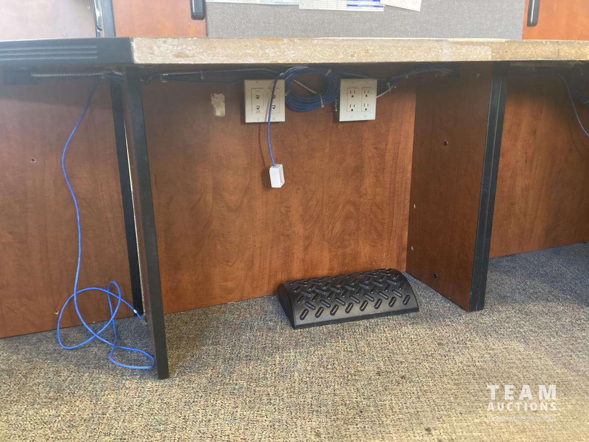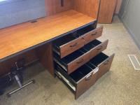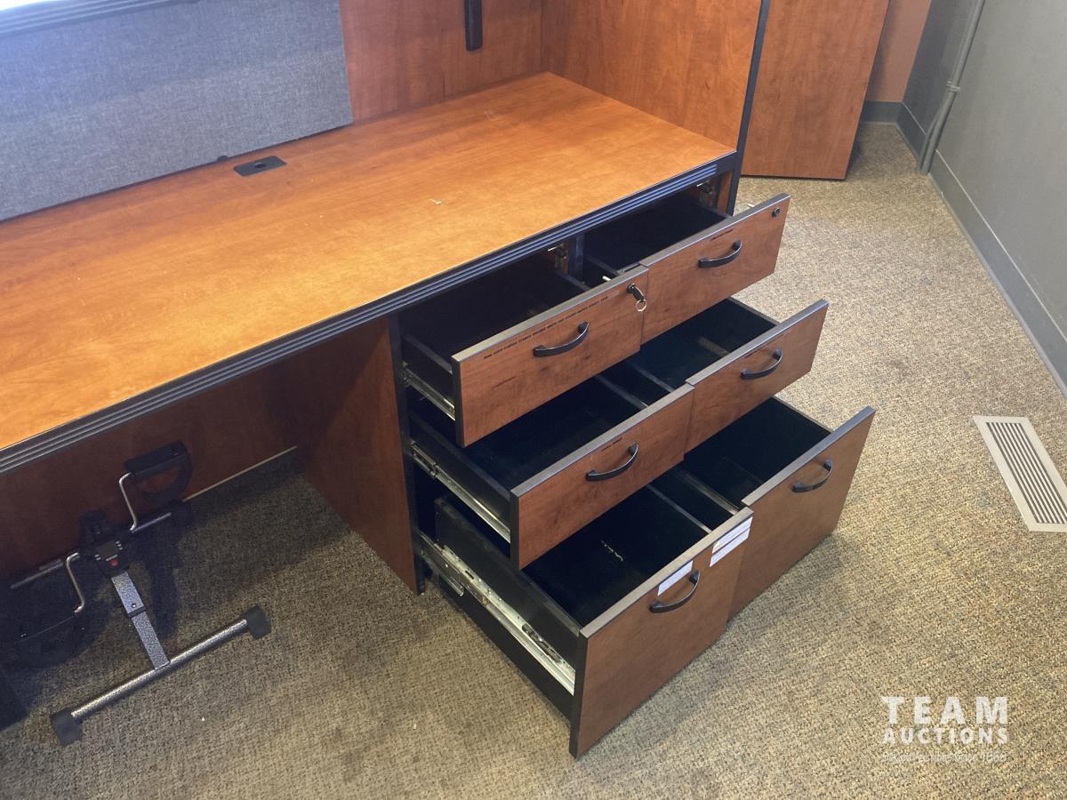 101 inch x 107 inch x 43 inch desk, 20 inch x 36 inch x 70 inch cabinet