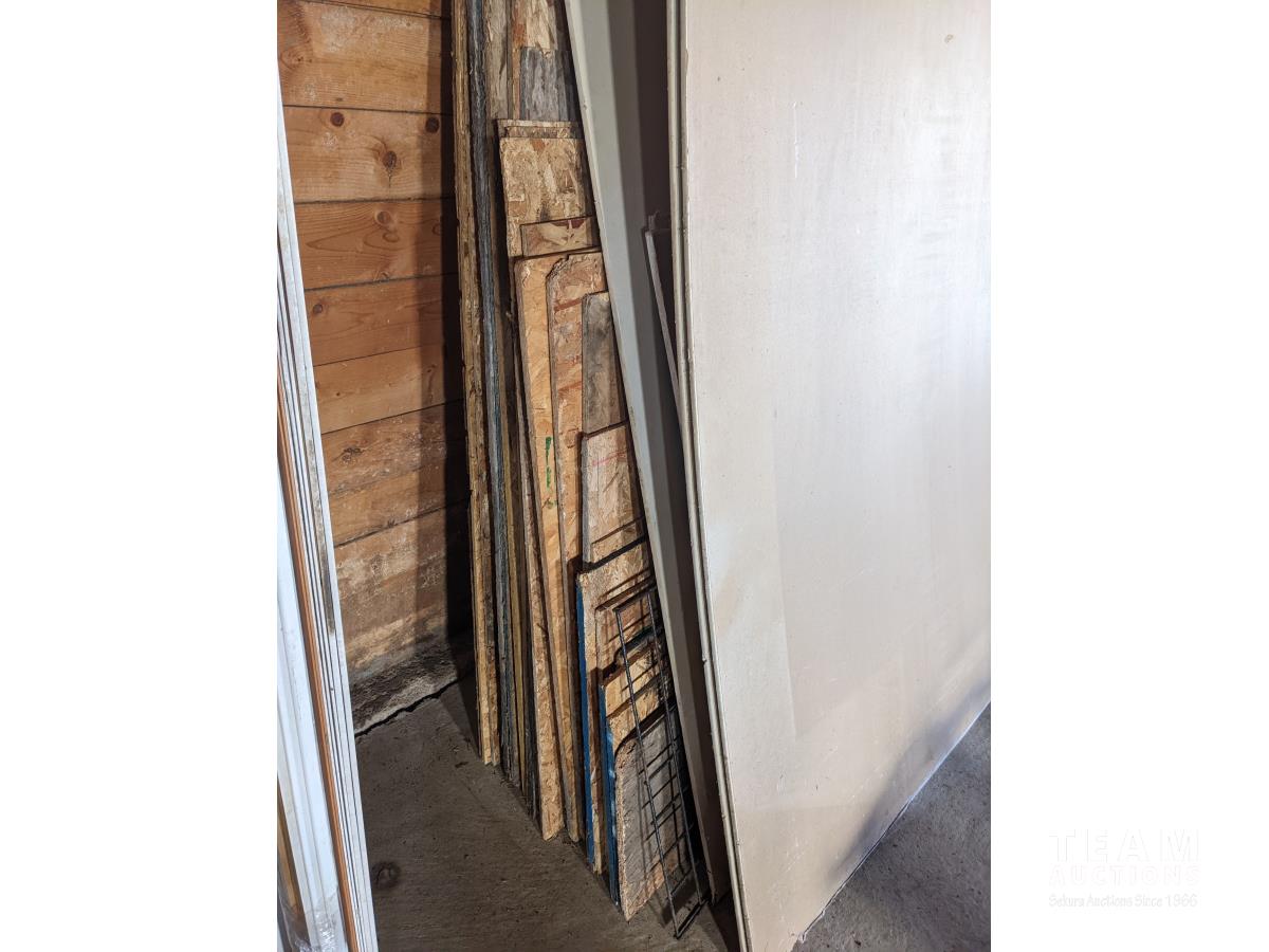 232 3/8 Drywall, Various OSB Pieces, 1/2 Inch Drywall Pieces, Small Metal Grating