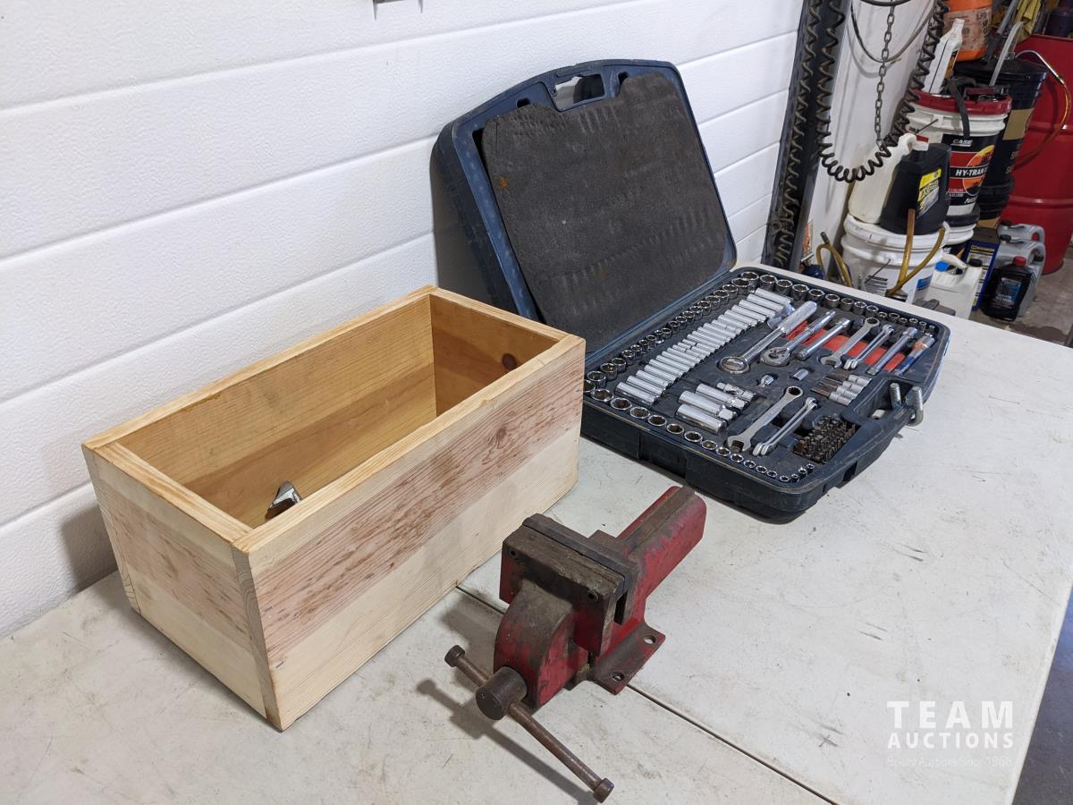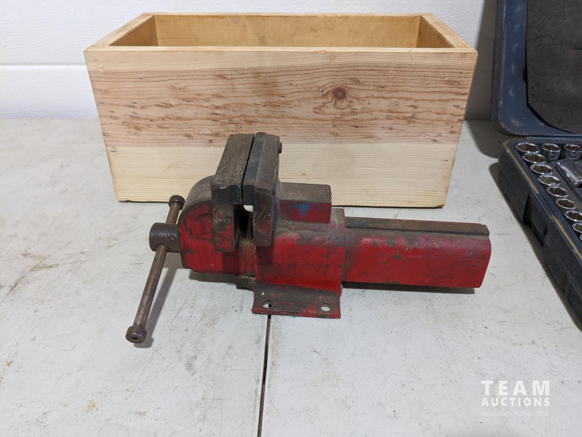 388 4 Inch Vise, Mastercraft Socket Set, Wood Box