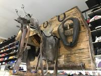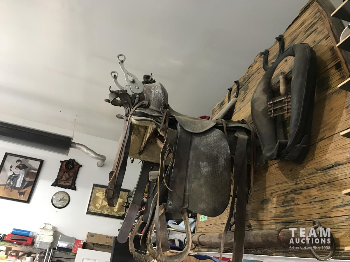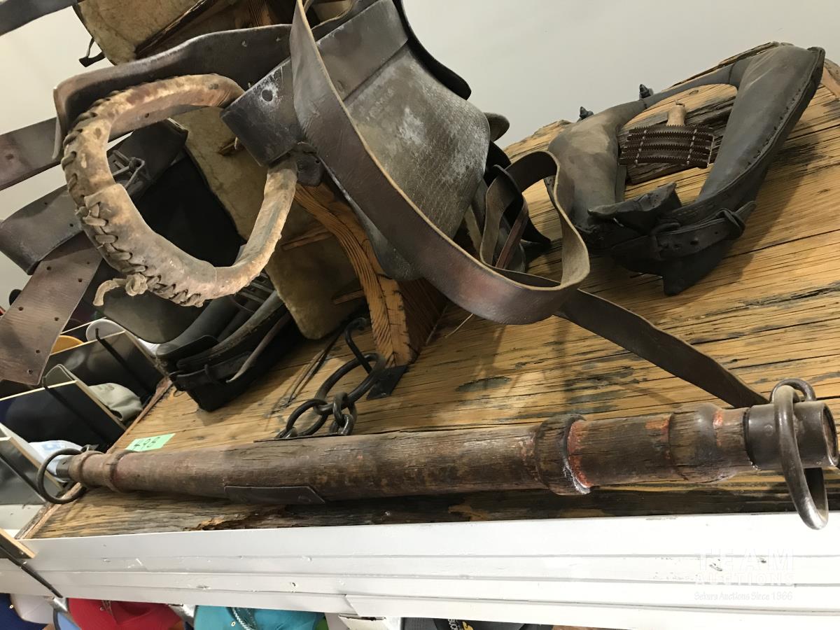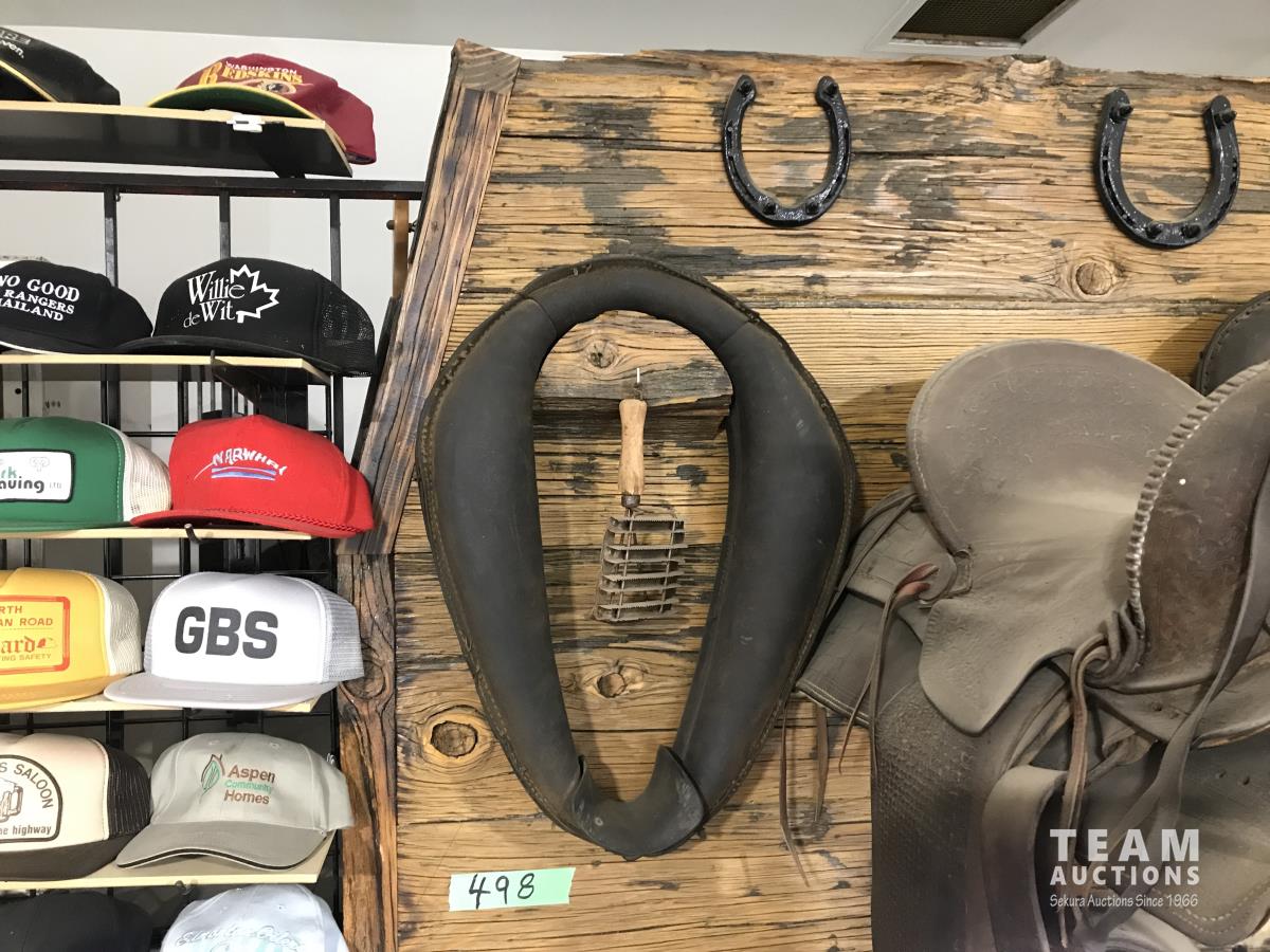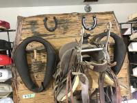 (2) Collars, neck yoke, bridle & head stall, (2) curry combs, horse shoes