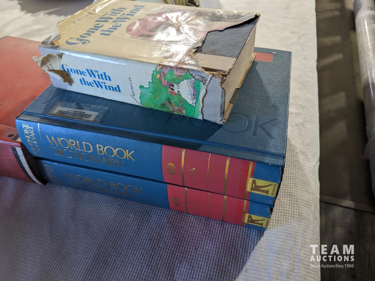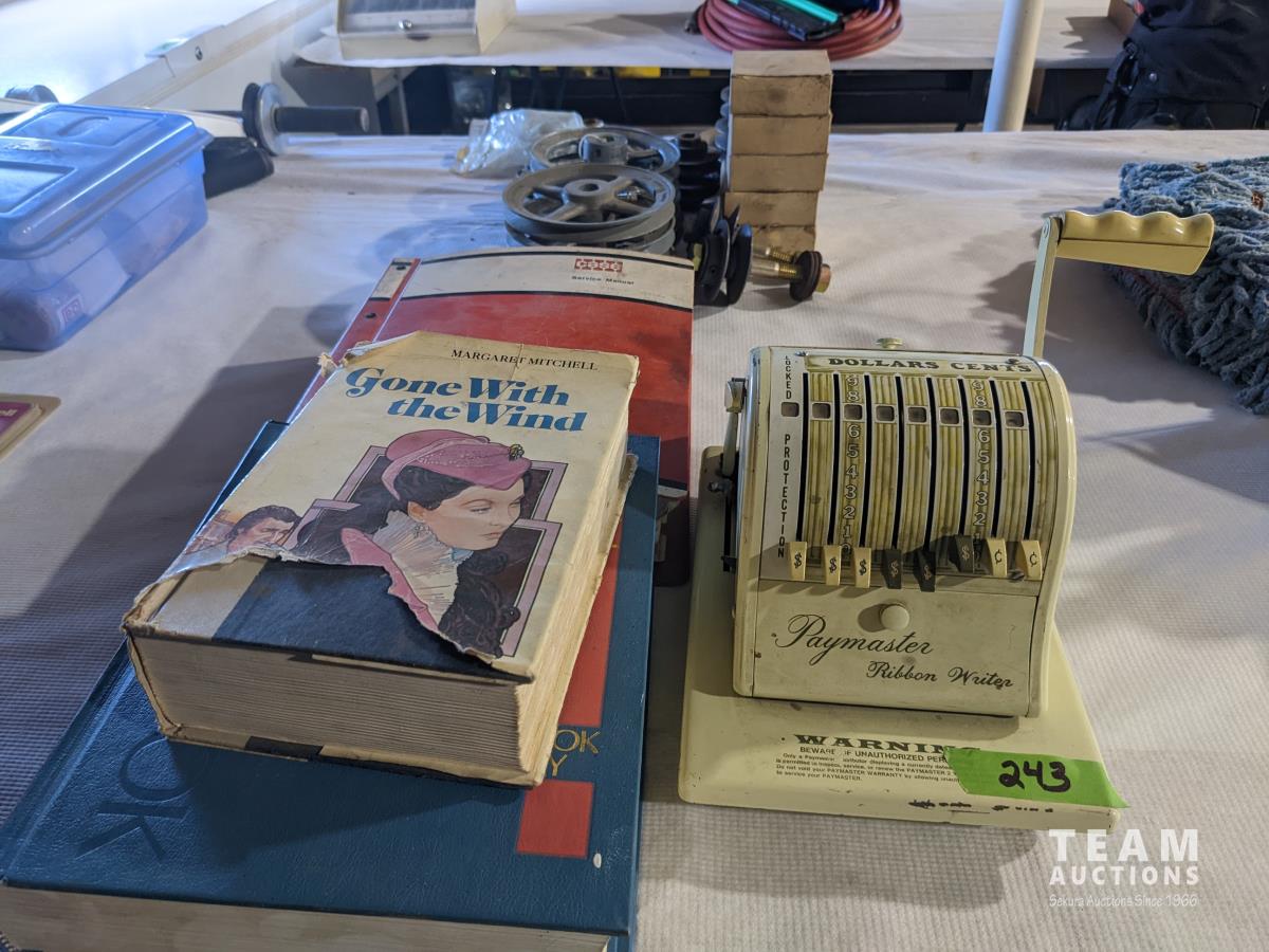 Paymaster ribbon writer, world book dictionary, gone with the wind book, Case manuals (2470,2670), pulley's