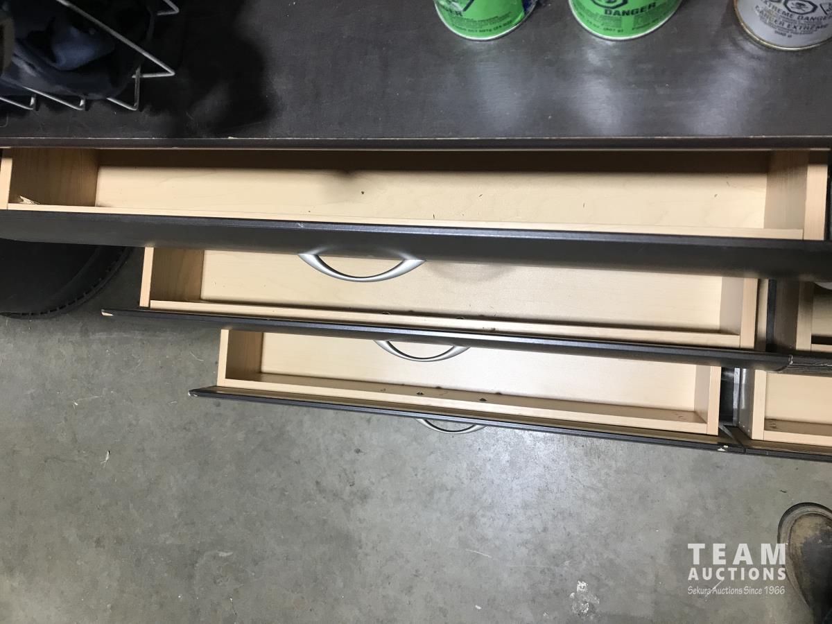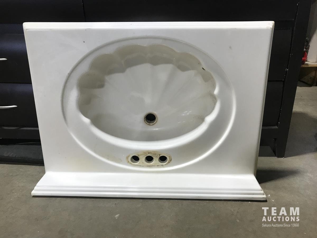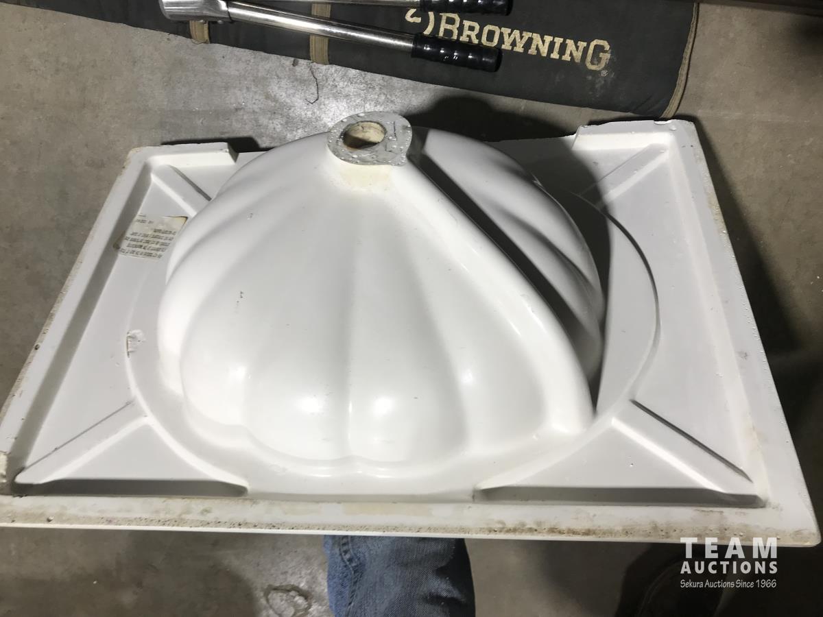 6 drawer dresser, 30 inch x22 inch porcelain sink, (3) pairs of coveralls, (1) snowsuit), (9) cans of window and door foam, (4) lumber lock, tool bag, gun case and dehorners.