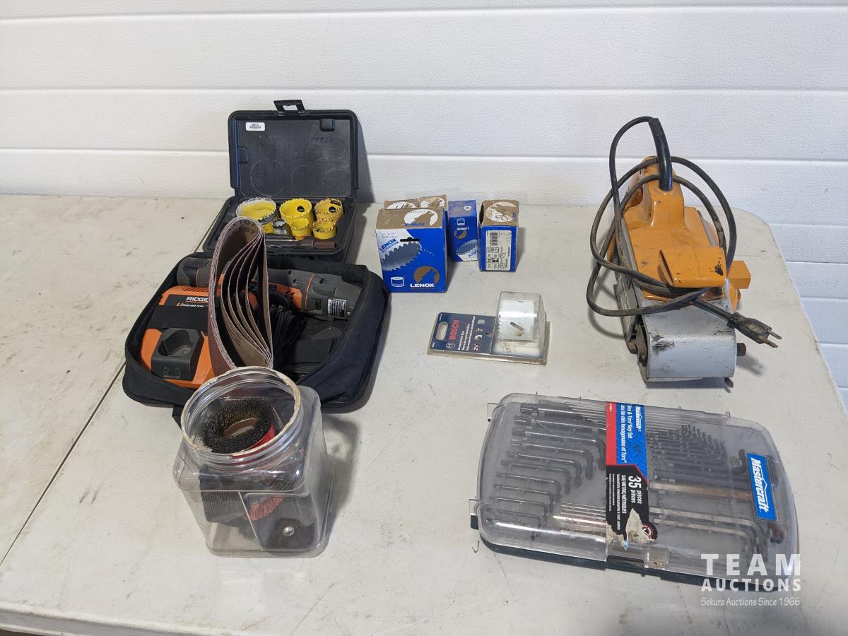 Black and Decker planer, Ridged sander, hole saws, hex keys, sand paper belts