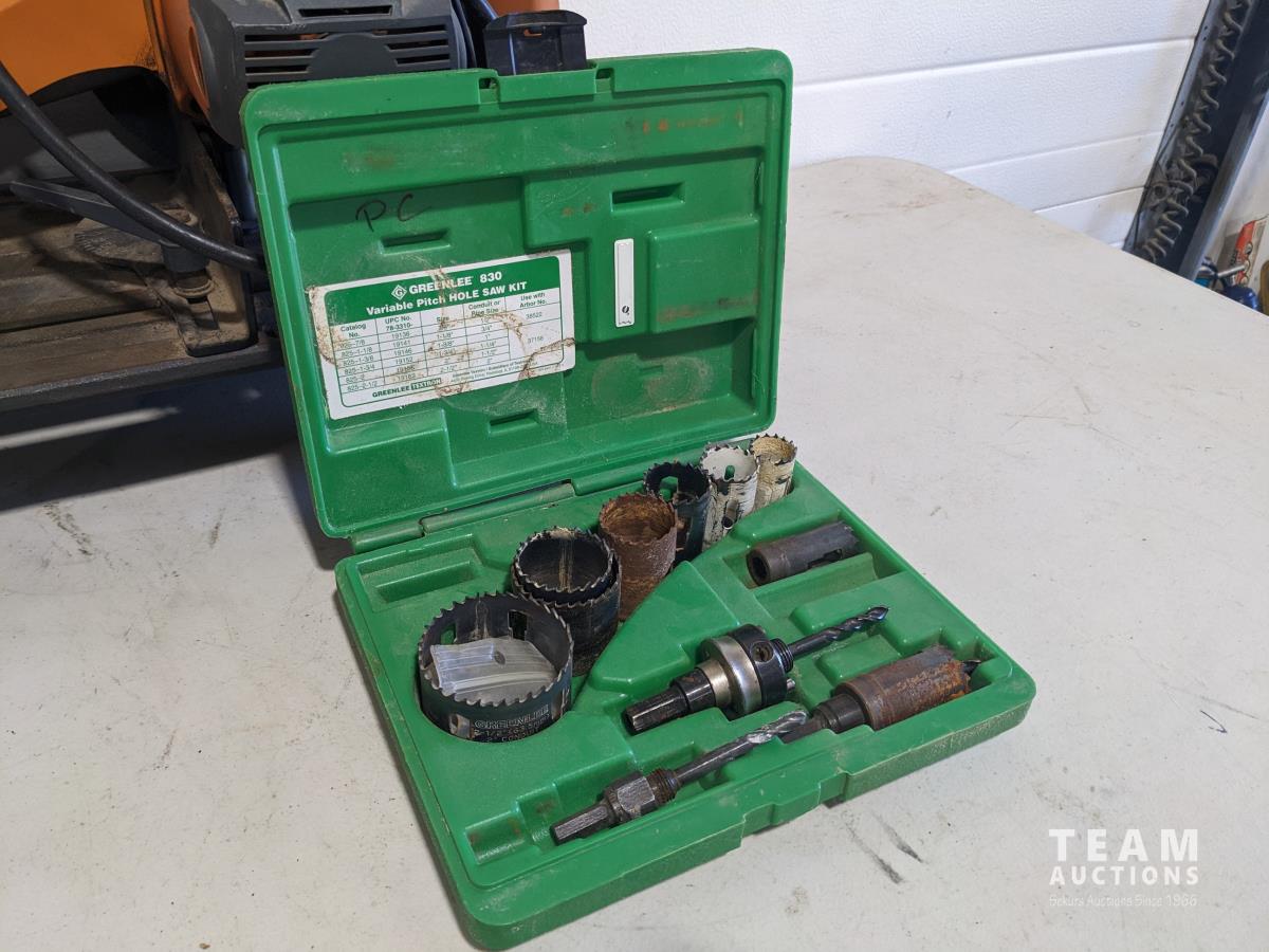 Rigid cut off saw, Black and Decker sander, Black and Decker jig saw, Greenlee hole saw kit, cut off discs