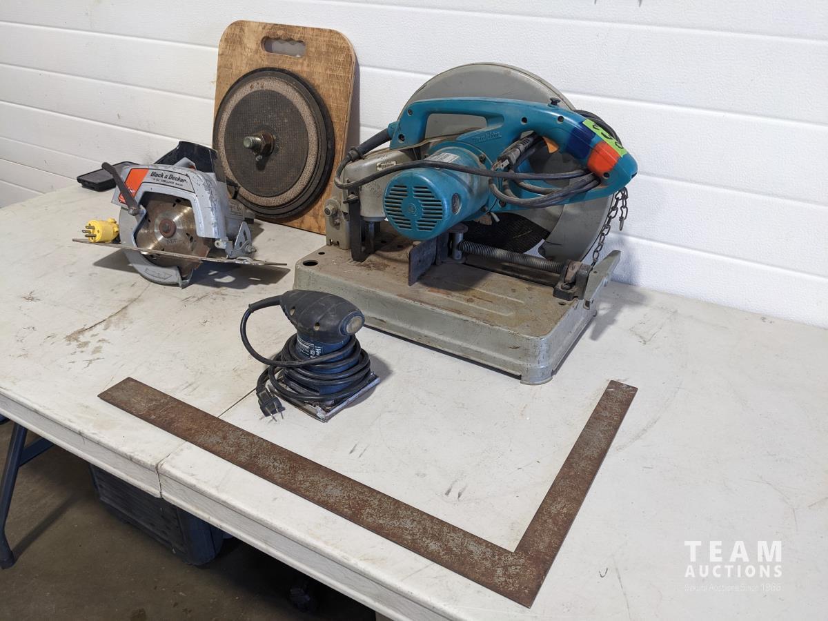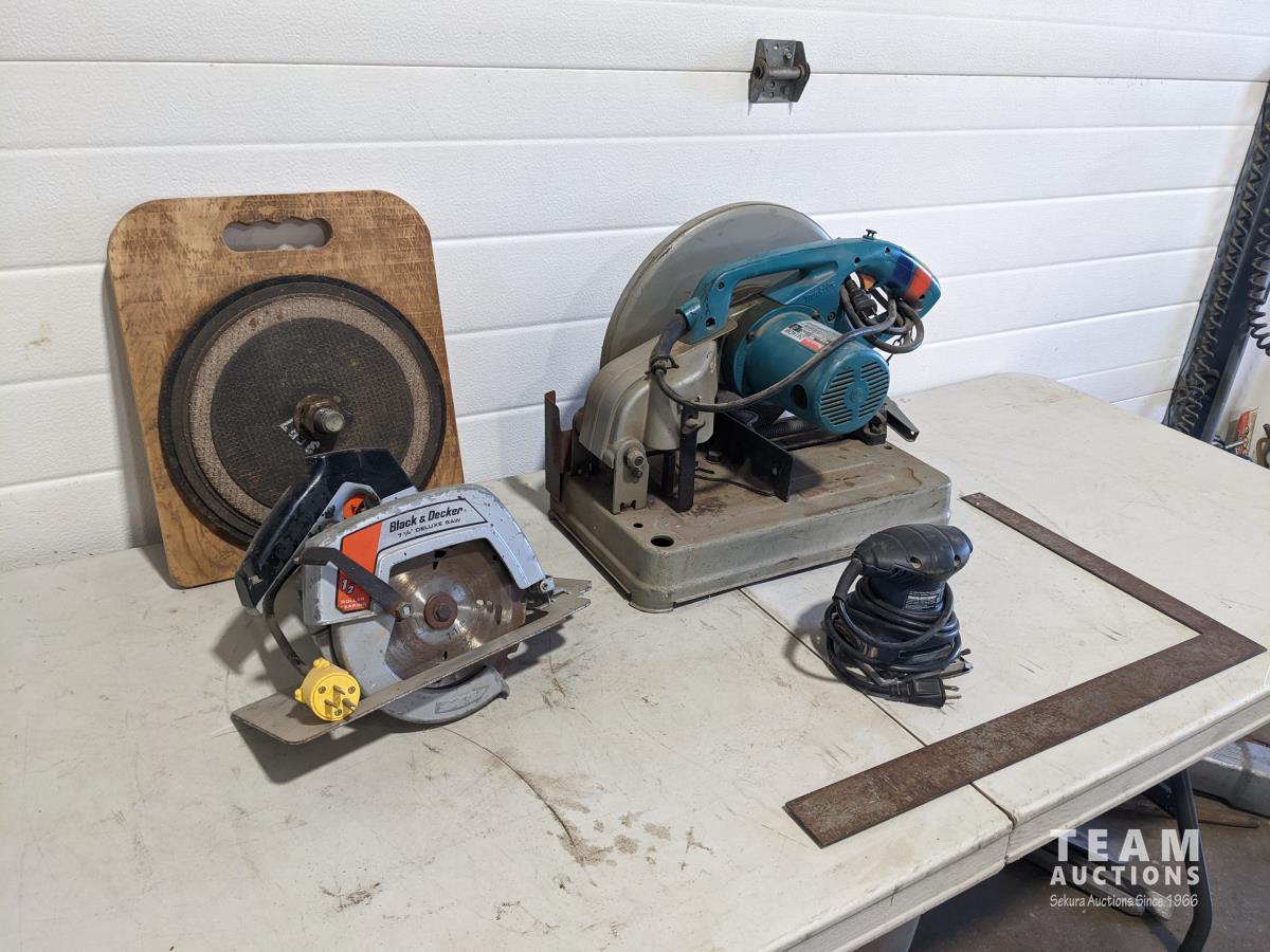 Makita cut off saw, Black and Decker circular saw, sander, square
