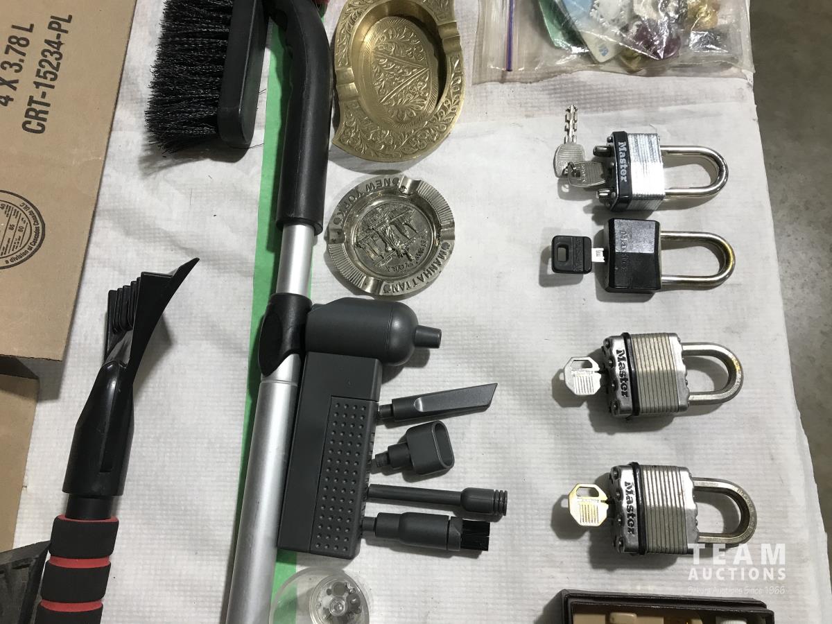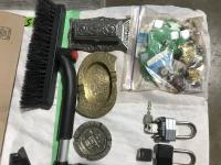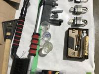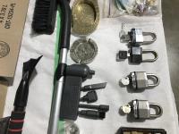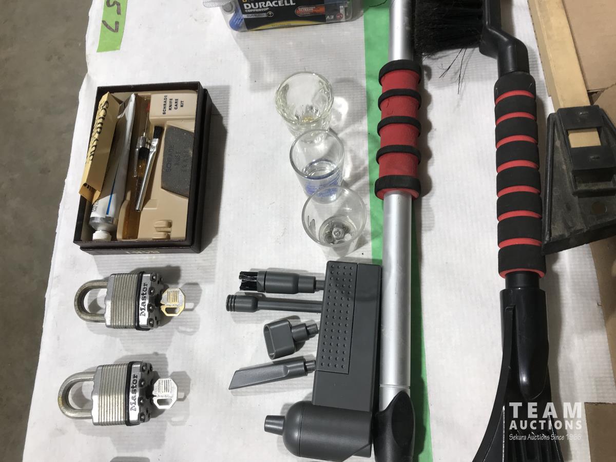 Window scrappers, locks, ring box, ash trays, miscellaneous batteries & super charger for dry cell batteries, napkins