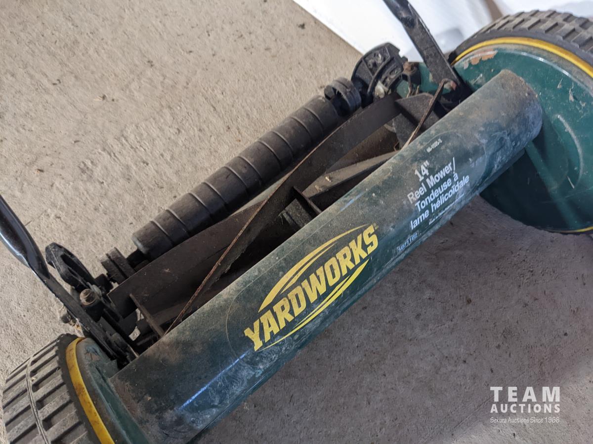 213 Weed Eater 4 HP Wheeled Trimmer & 14 Inch Yard Works Reel Lawnmower