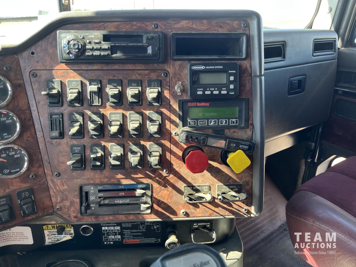 14.0L N14 Cummins Diesel, Eaton Fuller 18 speed transmission, air ride suspension, 48 inch sleeper, power divider lock, hydraulic wet kit, proheat, 216 inch WB, 12,860 lb fronts, 40,000 lb rears, 11R24.5