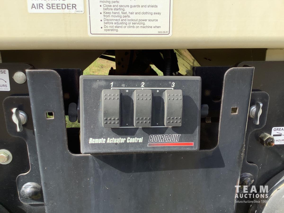Floating hitch, 10 inch spacing, double shoot, heavy shank assemblies, 5.90-15 pneumatic packers, rear tow hitch, 2006 Bourgault 6350 air tank, 3 compartment, dual fans, loading auger, in cab control monitor, manuals, tank tires 21.5-16.1 front & 28L-26 rear