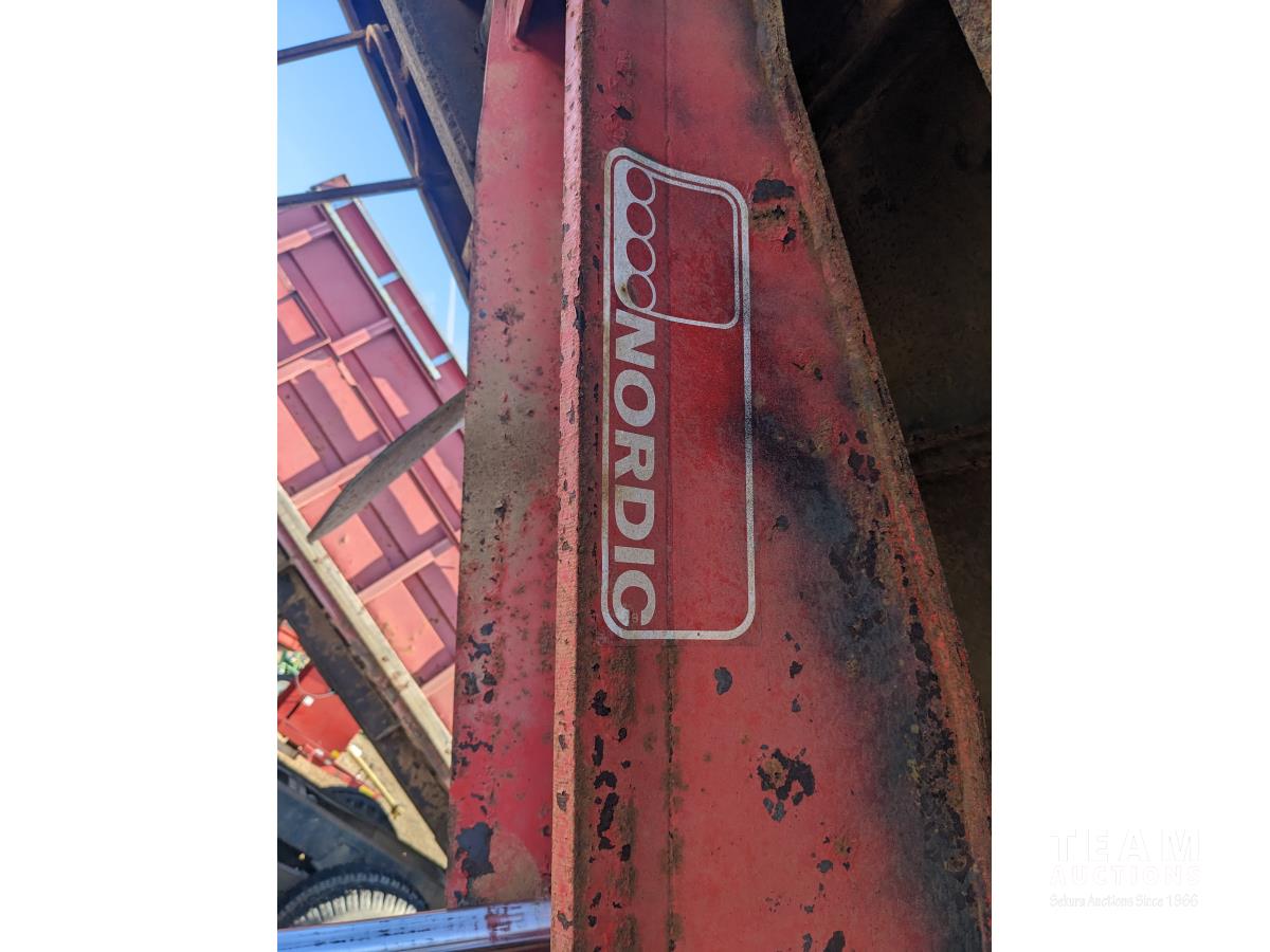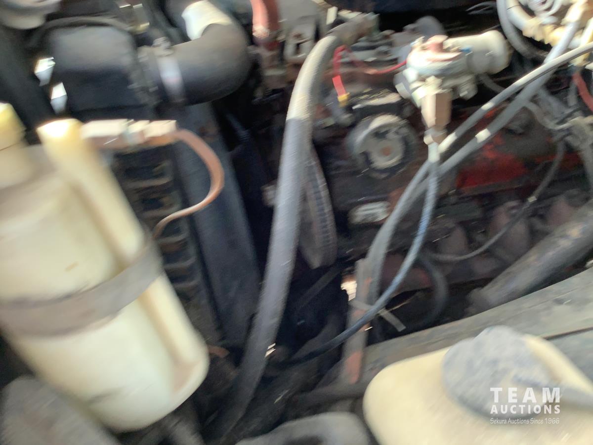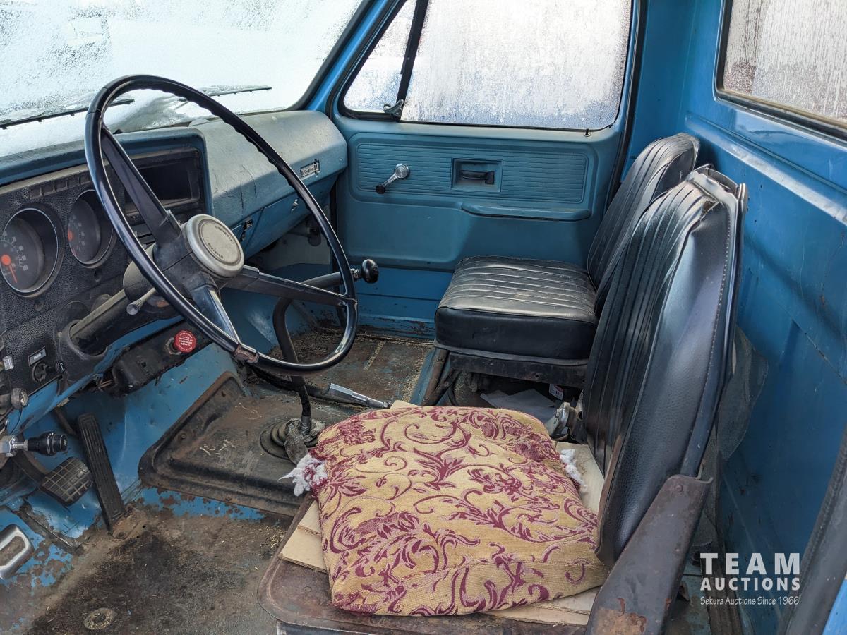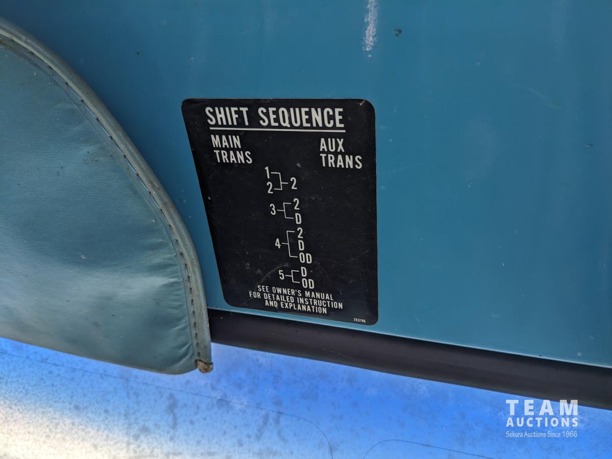 Gmc 427 V8 355 HP gas engine, manual transmission, 18 ft box, spring suspension, 10,860 lb front axle, 32,320 lb rear axles, Nordic twin cylinder hoist, air brakes, 9.00-20 tires