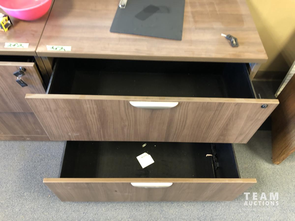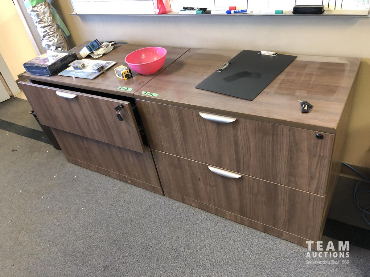 16 (2) 22 Inch X 35 Inch Filing Cabinets & (1) 19 Inch X 65 Inch Wood Cabinet