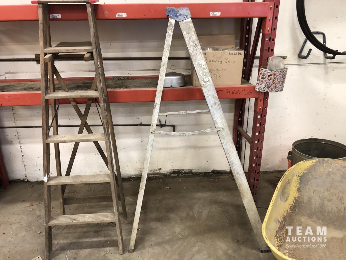 68 (2) Step Ladders, Wheelbarrow & Metal Garbage Can