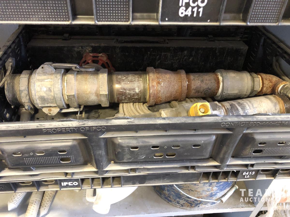 Assorted pipe fittings, qty of camlock fittings, rubber patch kits, aluminum manhole ladder rungs, tar sealant, fire hose, nuts, bolts, studstransfer pump, garbage can, miscellaneous items