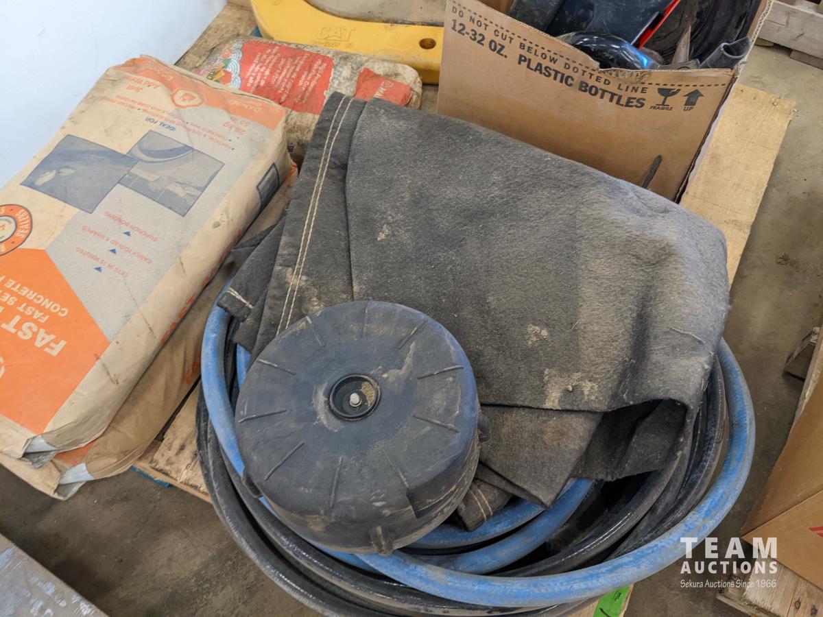 Hose, (2) fast patch concrete, (2) ripper teeth, miscellaneous items
