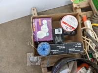 1 inch ratchet straps, shims, bolts, weather stripping, light bulbs, sledge hammer, mechanics wire, miscellaneous hardware