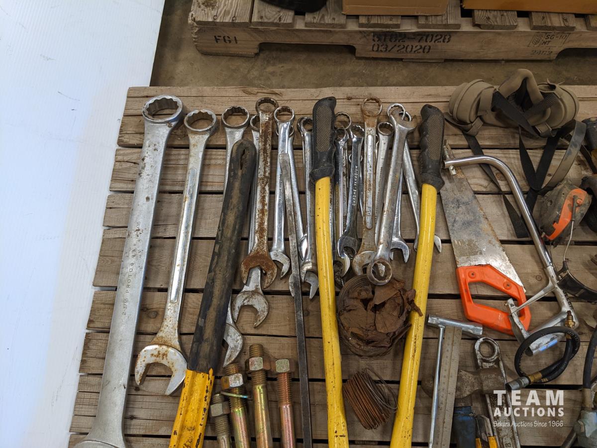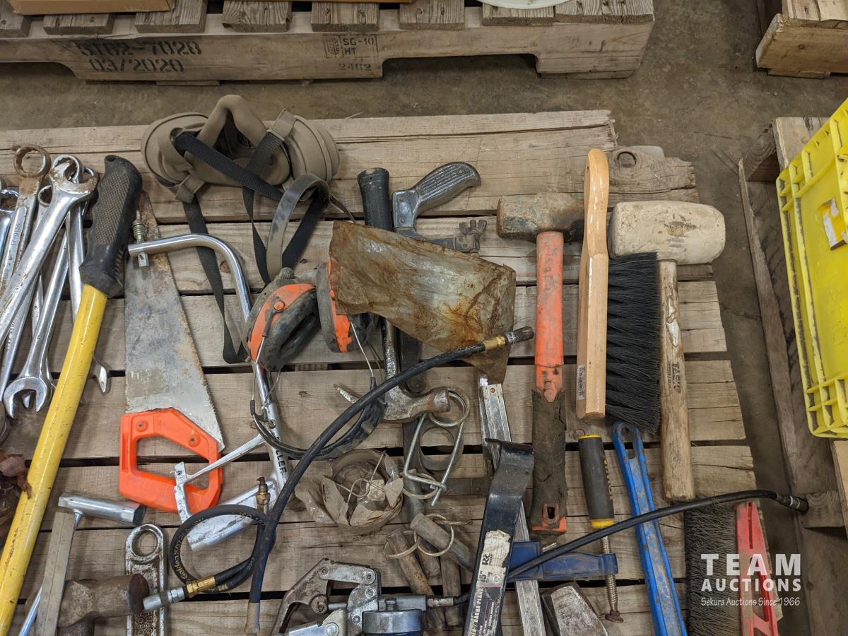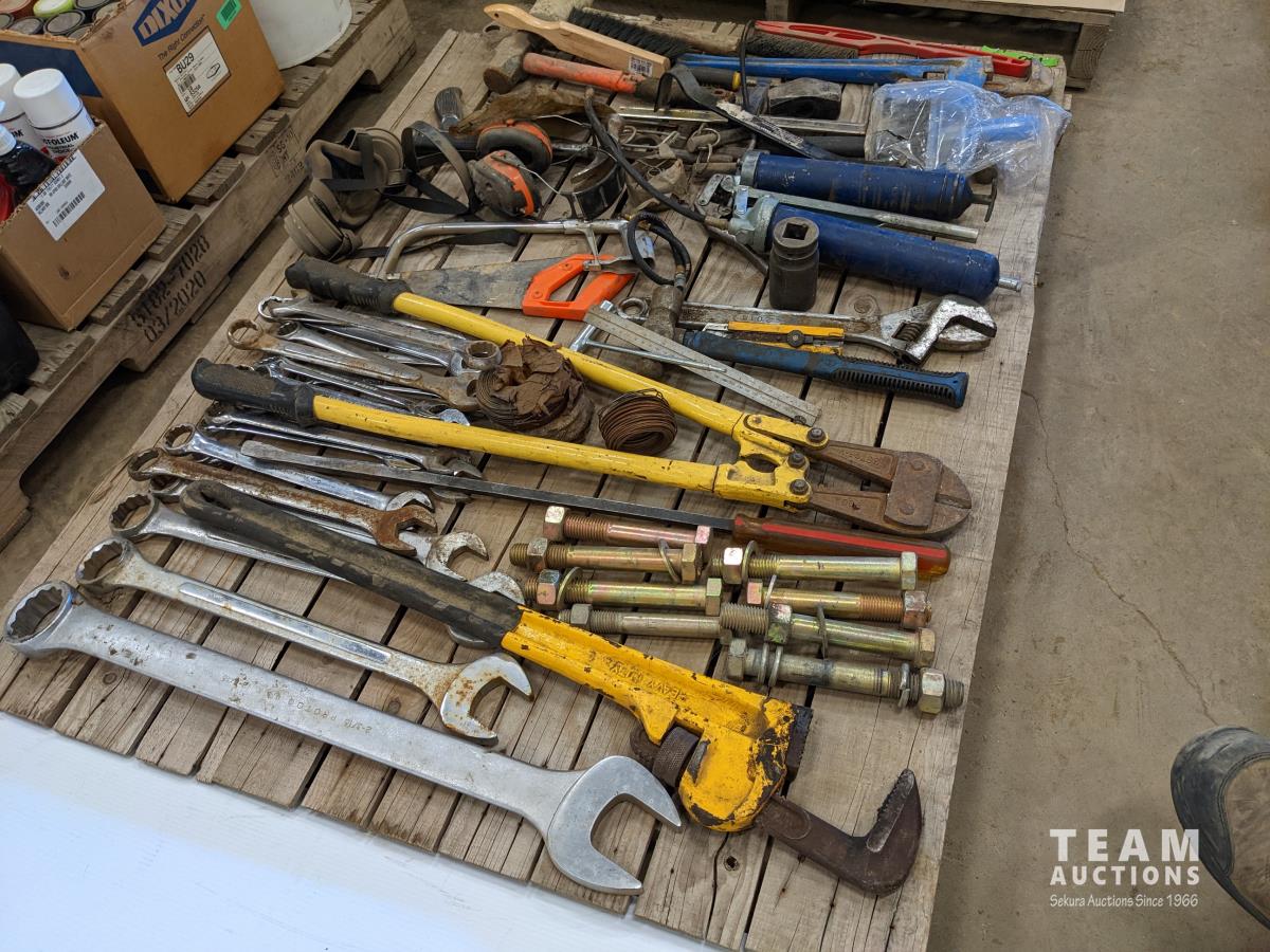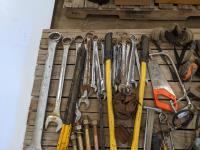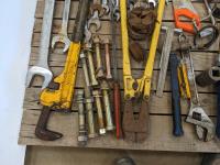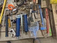 Grease guns, wrenches, hammers, bolt cutter, pipe wrenches, saws, miscellaneous hardware