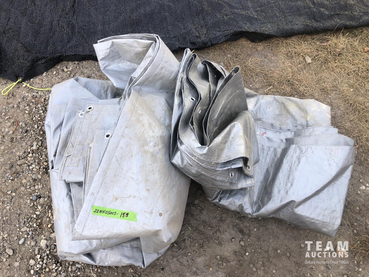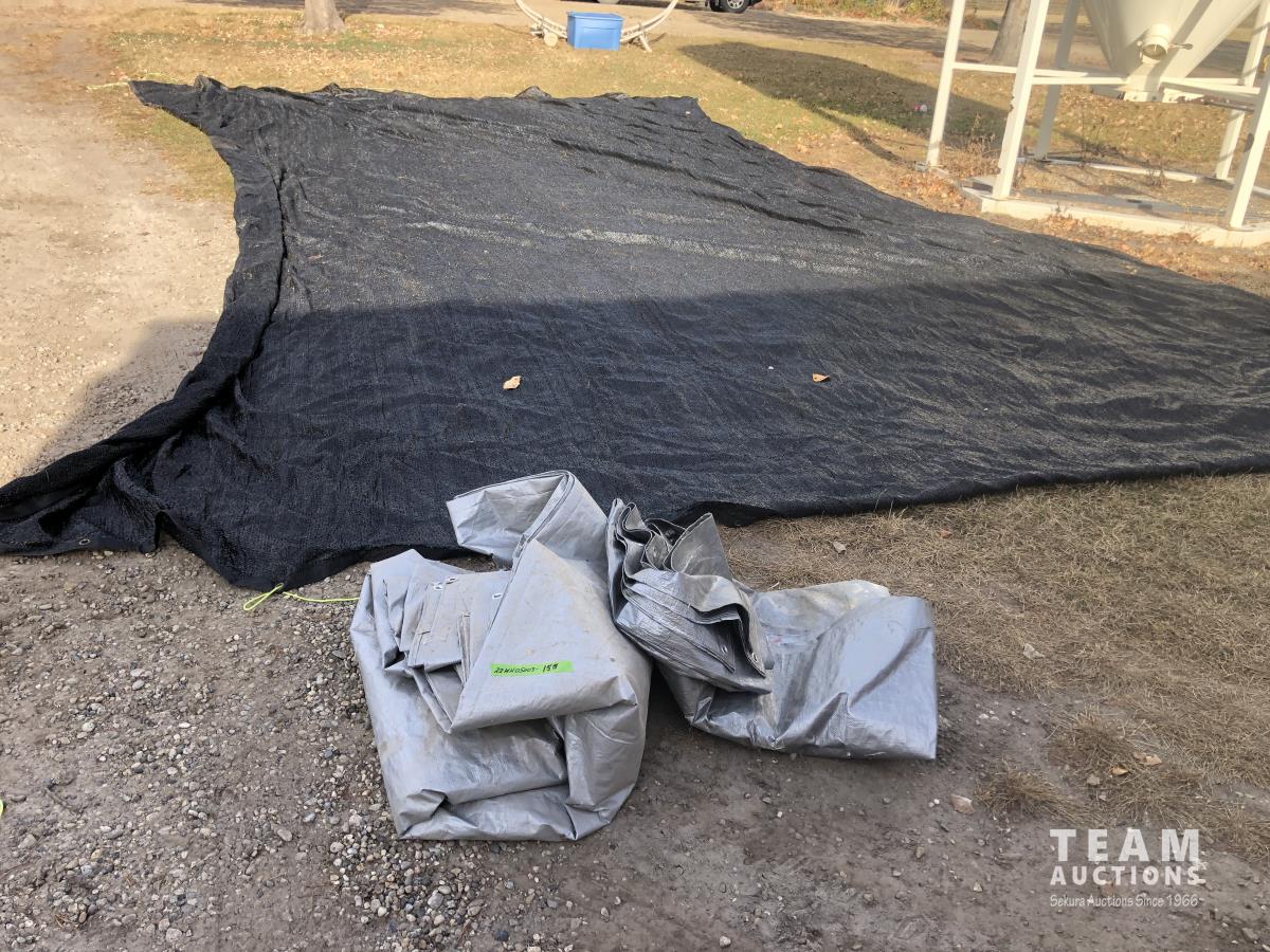 198 (2) Gray Tarps & (1) 18 Ft X 28 Ft Mesh Tarp