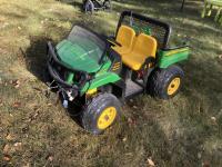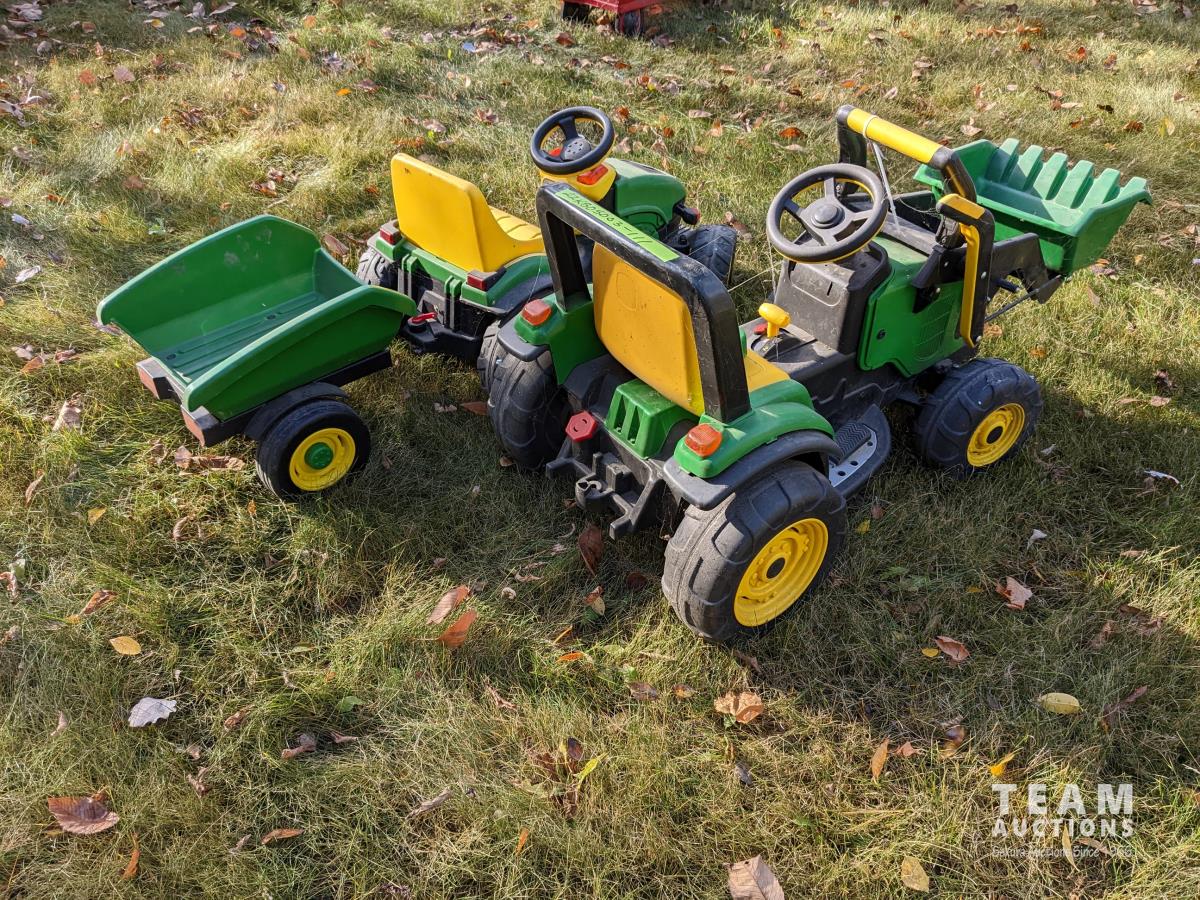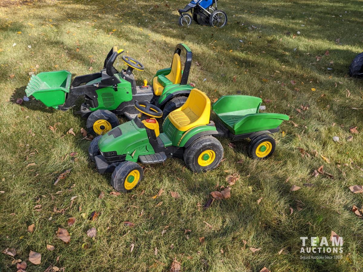 54 (2) John Deere 12 Volt Tractors w/ Wagon