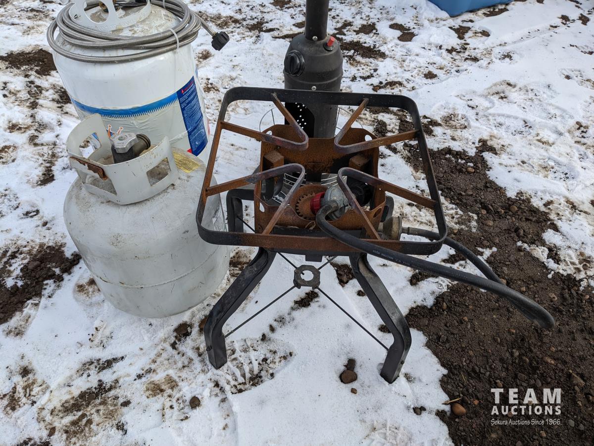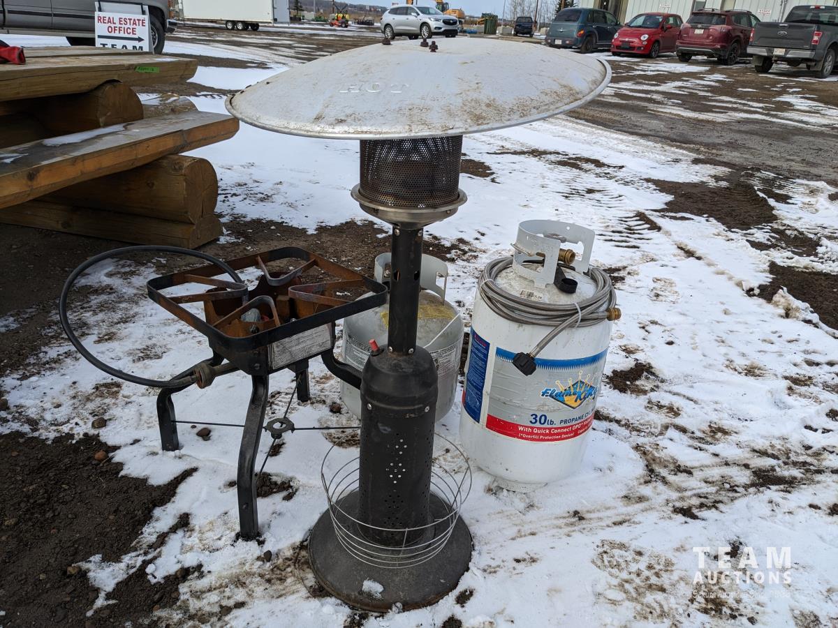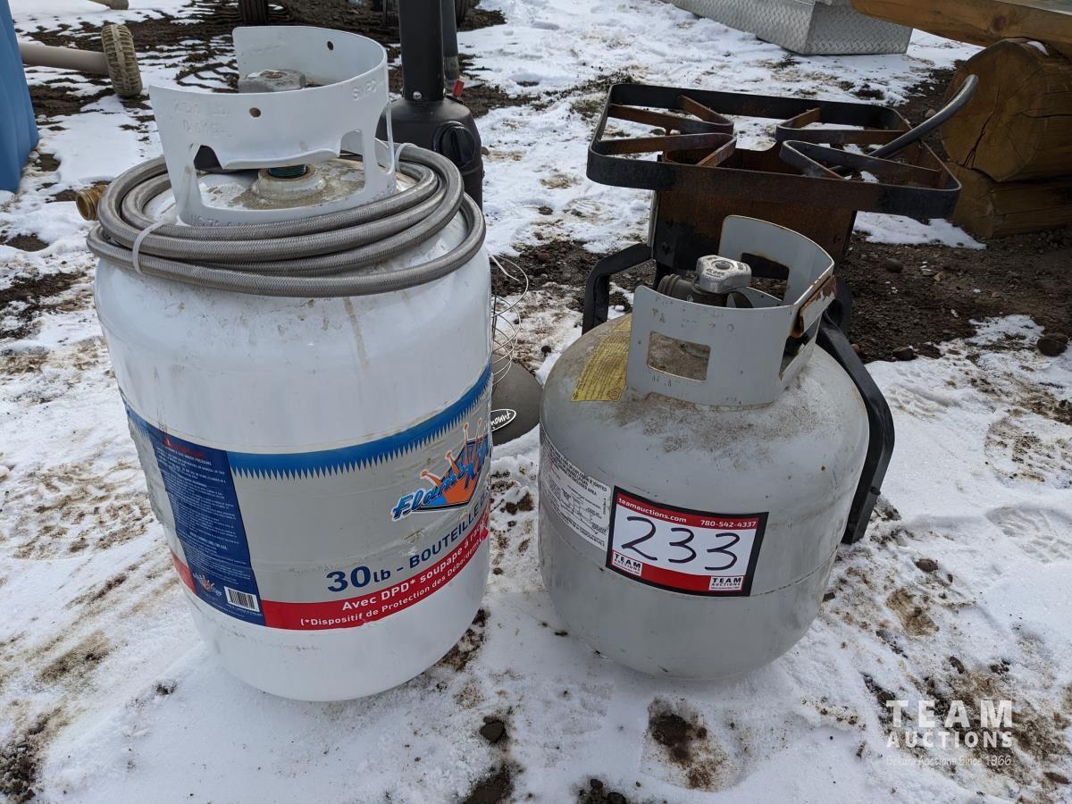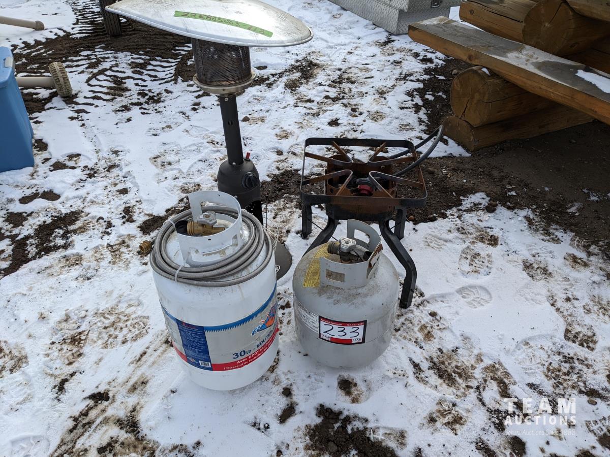 233 (2) Propane Bottles, Propane Patio Heater, Propane Pot Heater w/ Stand