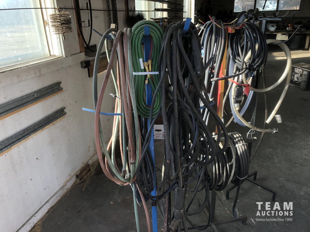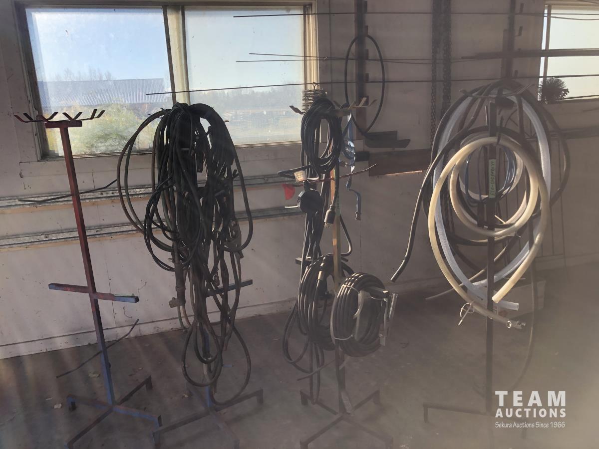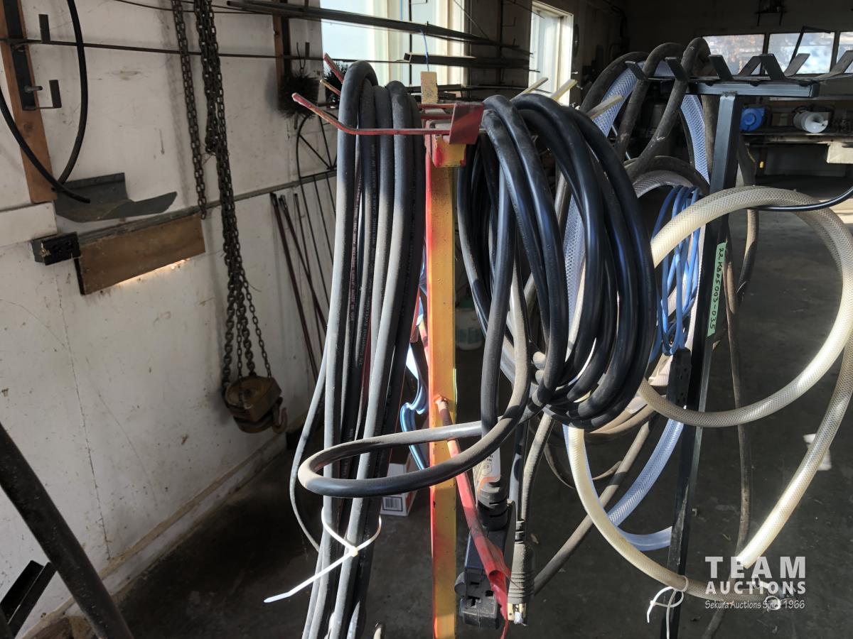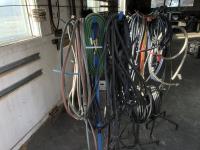 24 (4) Shop Racks with Assorted Hoses, Welding Cable and Extension Hoses