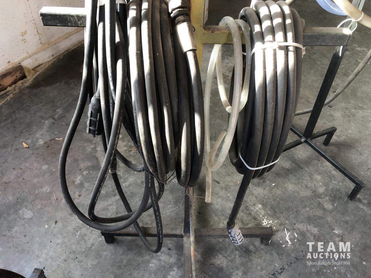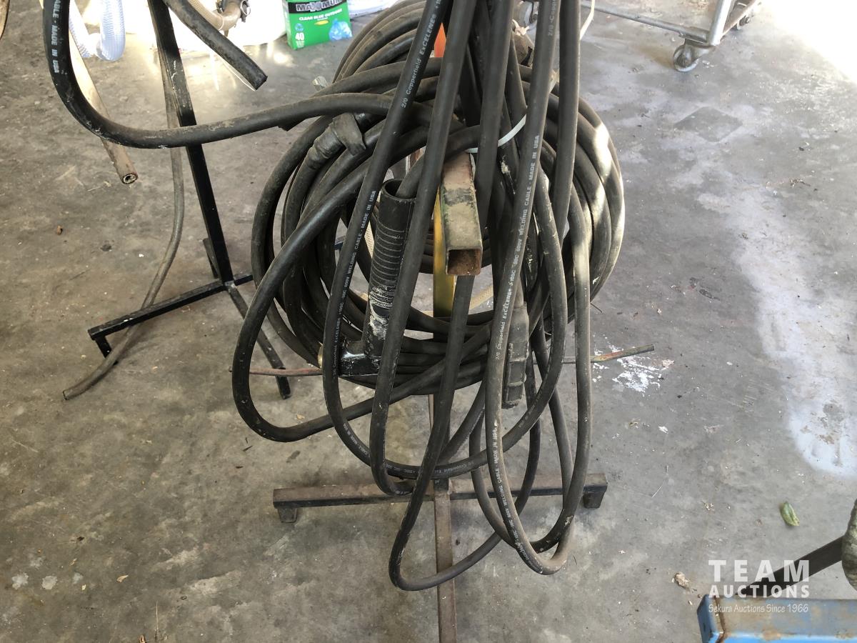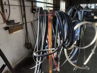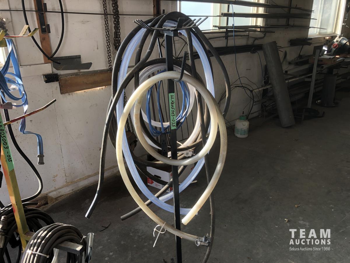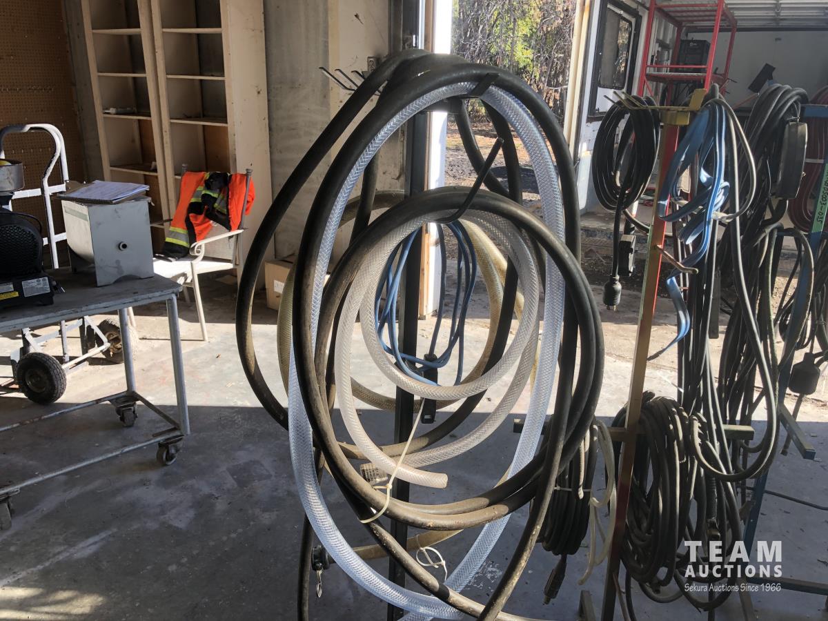 24 (4) Shop Racks with Assorted Hoses, Welding Cable and Extension Hoses