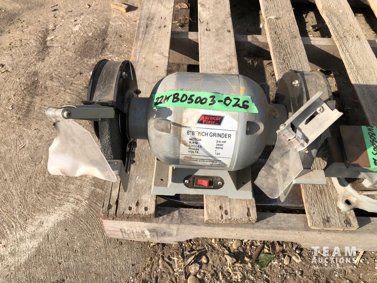 143 American Forge 6 Inch Bench Grinder and 3 Inch Bench Vice