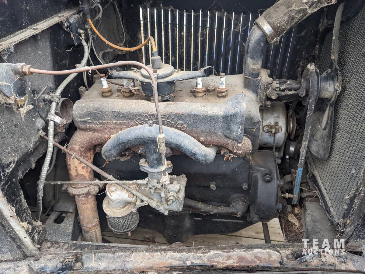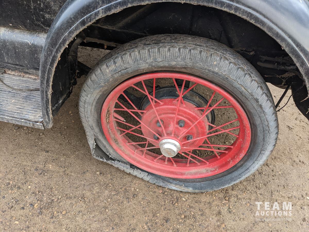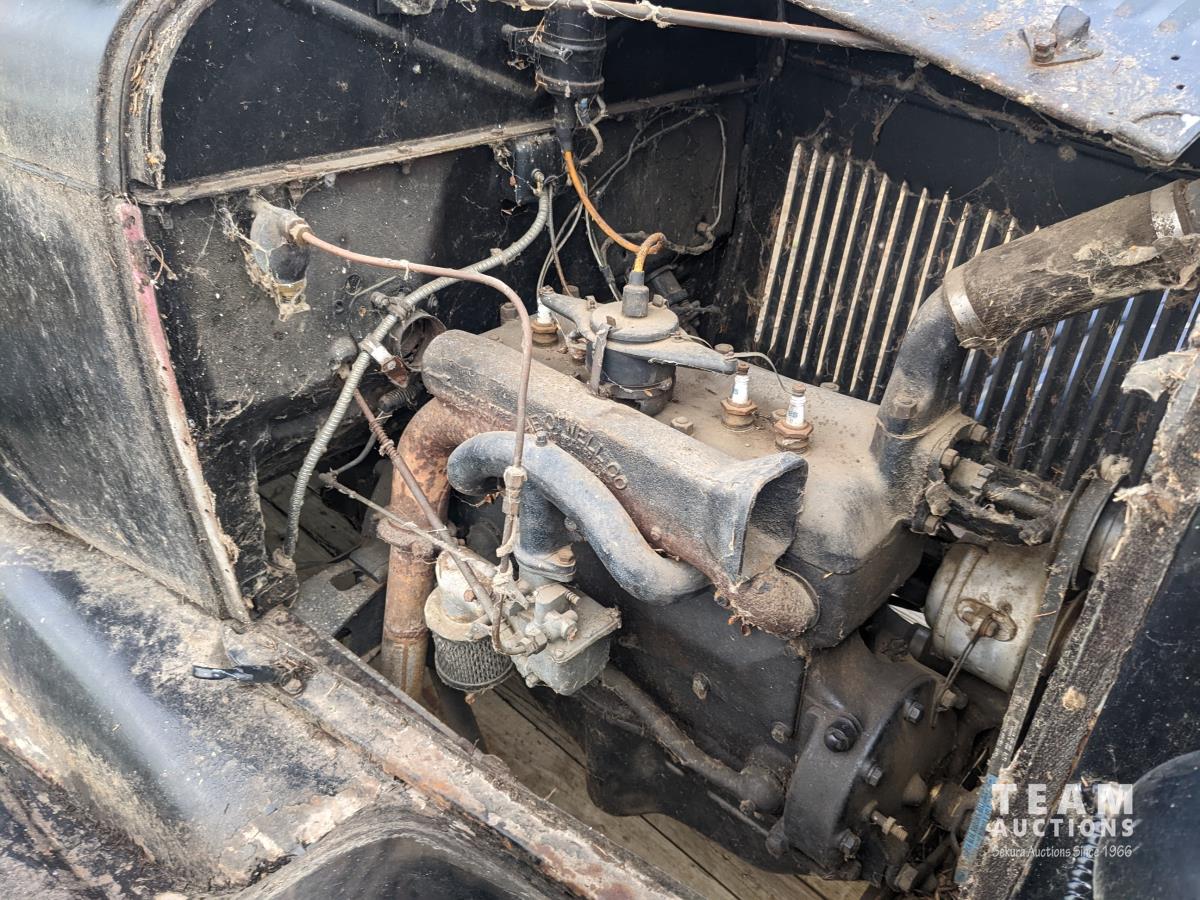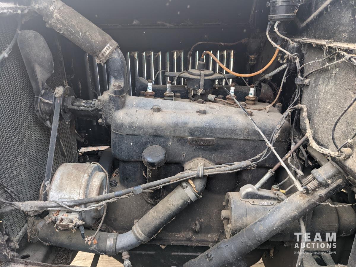 4 cylinder gas engine, 3 speed manual transmission, rumble seat, 4.50-21 tires