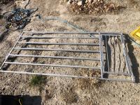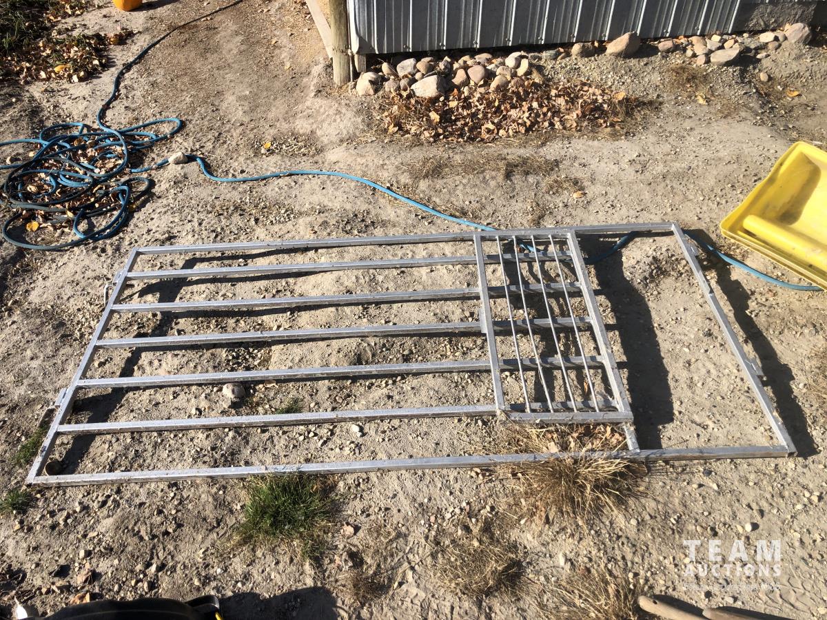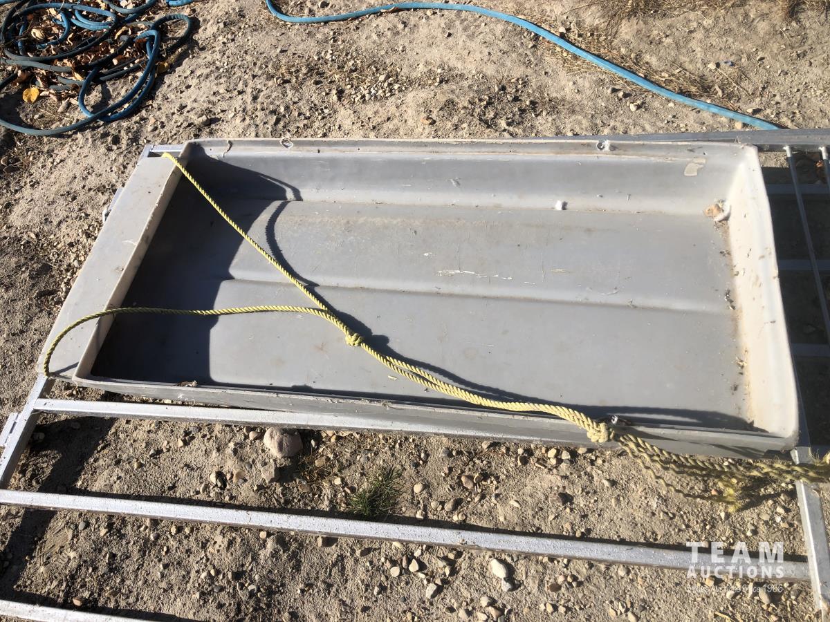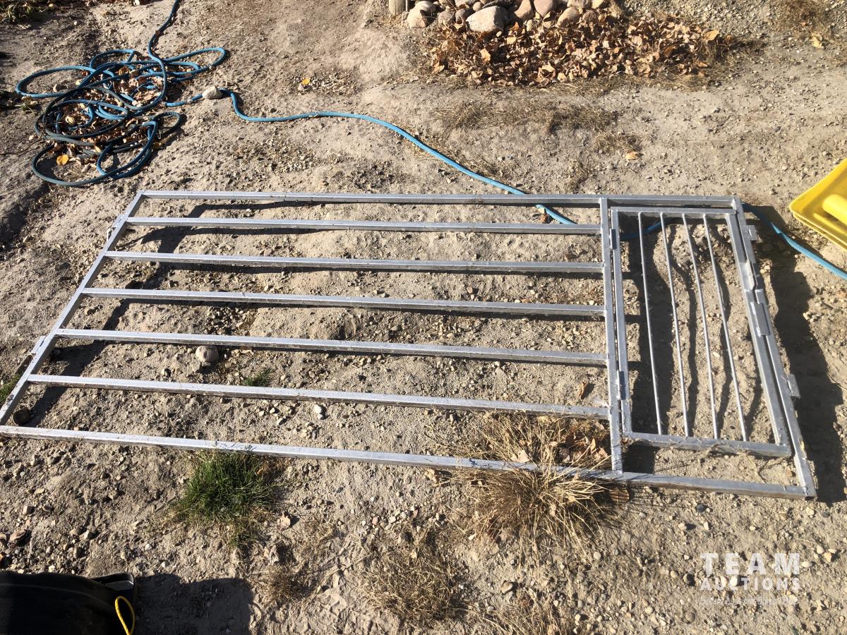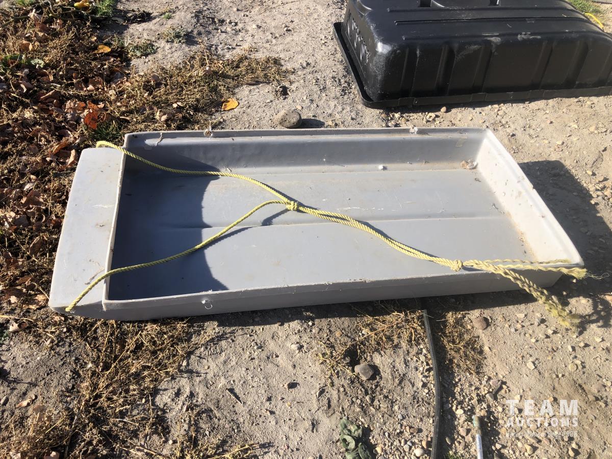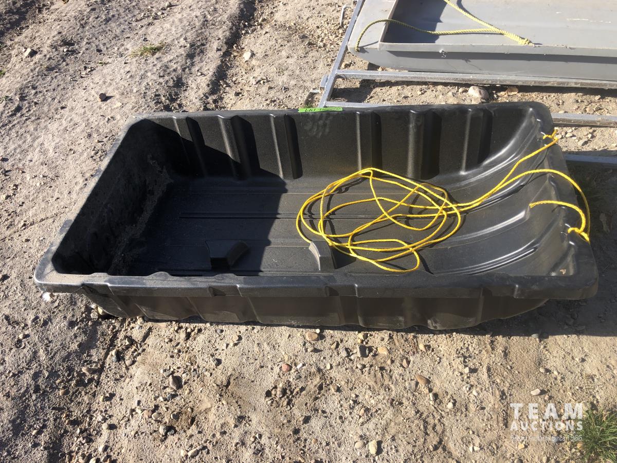 (1) poly fence feeder, (2) calf sleds, 45 inch H X 92 inch long panel with small gate
