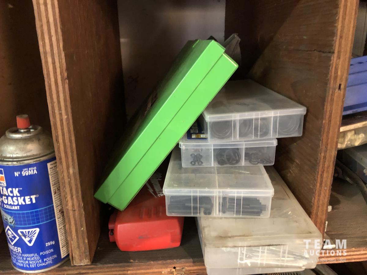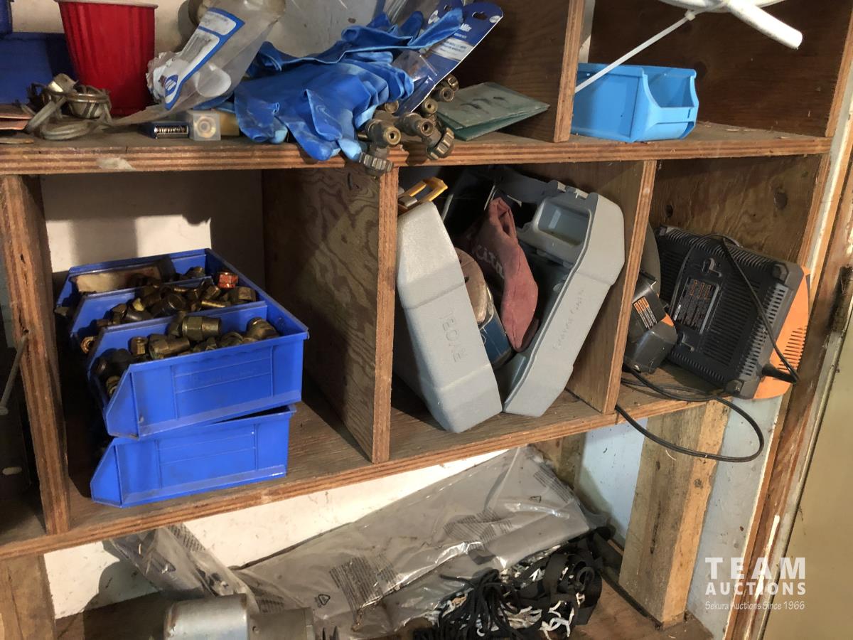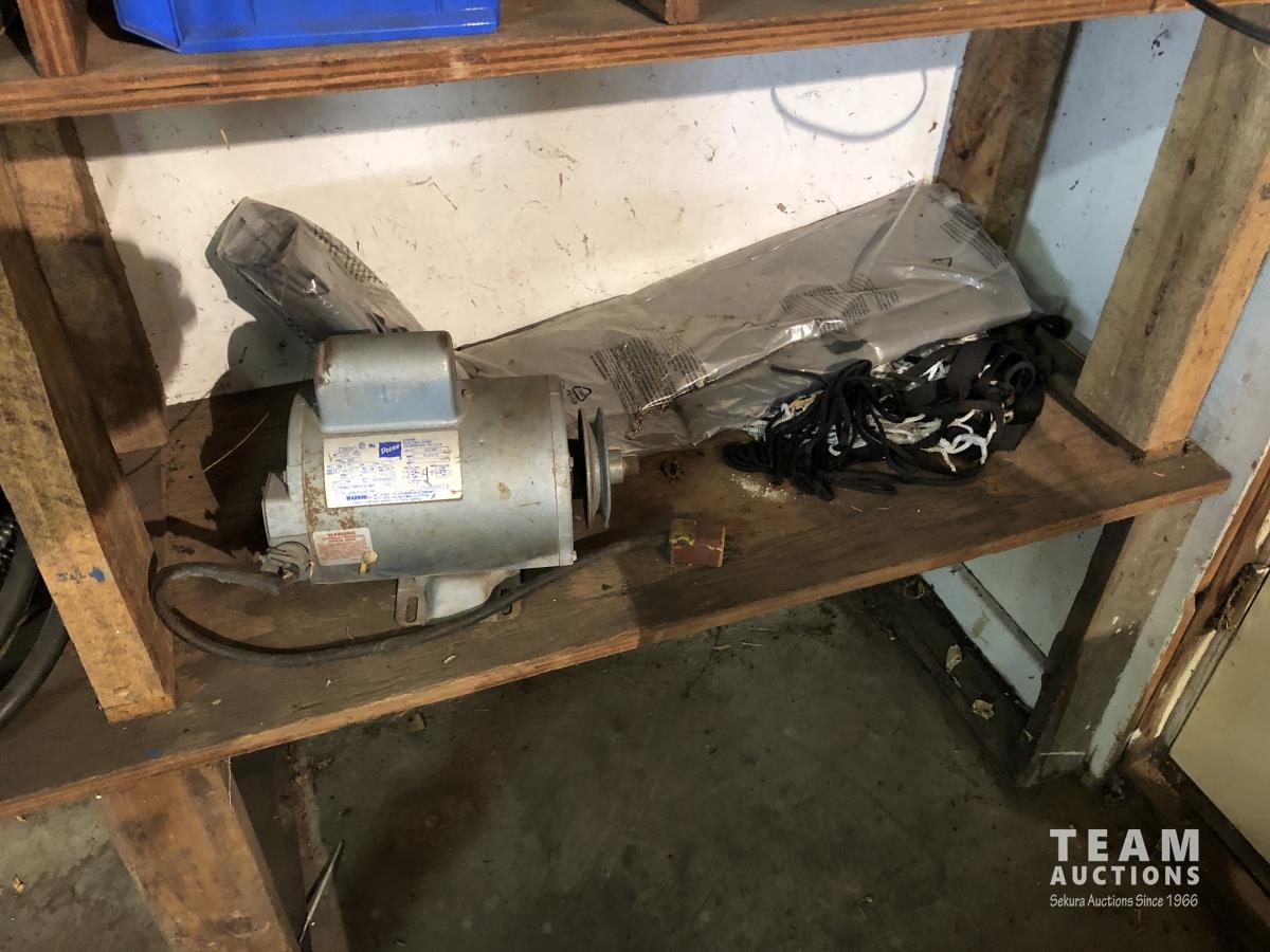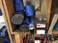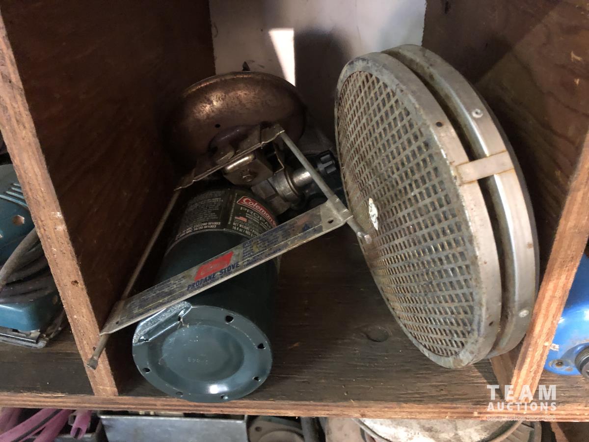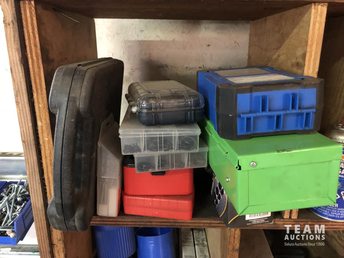 O-rings, drill bits, welding rods, tap and die set, cotter pins, grinder, palm sanders, single phase 1/2 HP motor, skil saw, Coleman stove, lock boxes, regulators