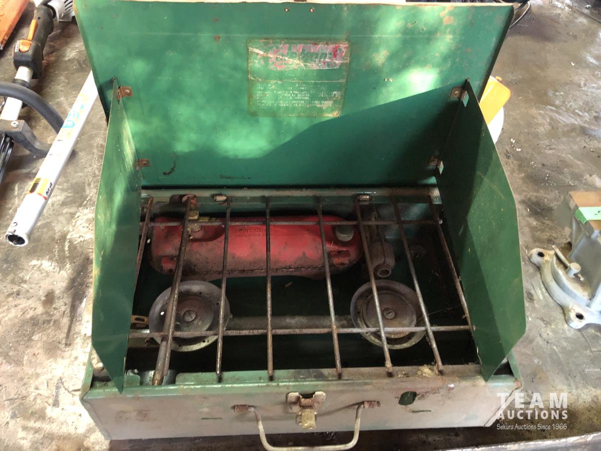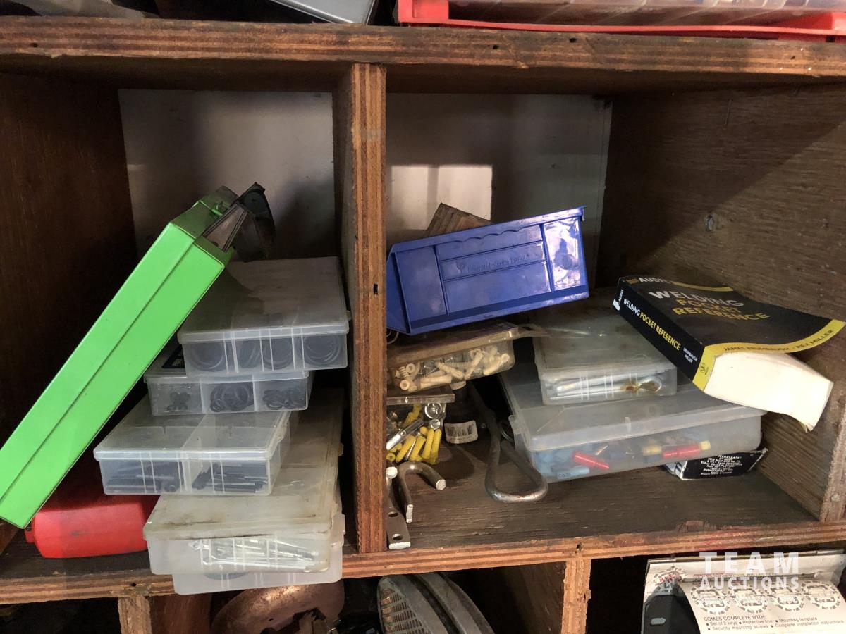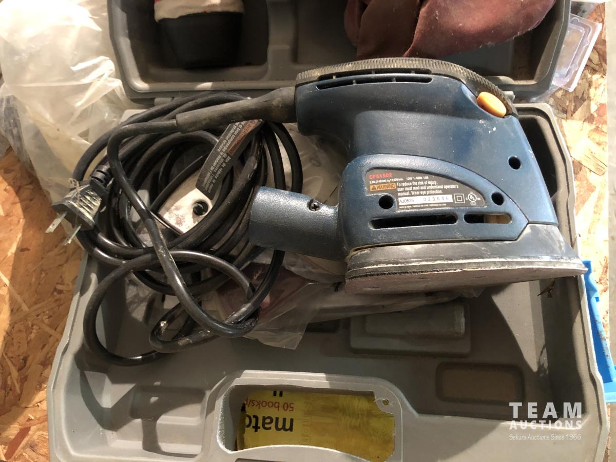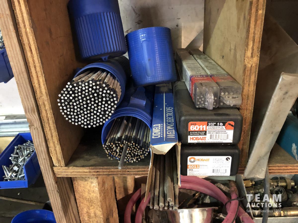 O-rings, drill bits, welding rods, tap and die set, cotter pins, grinder, palm sanders, single phase 1/2 HP motor, skil saw, Coleman stove, lock boxes, regulators