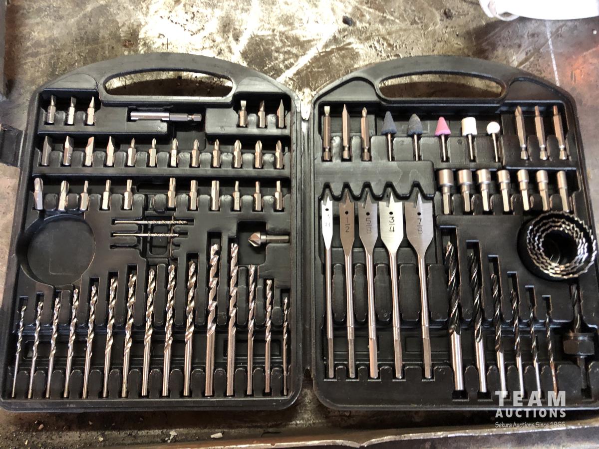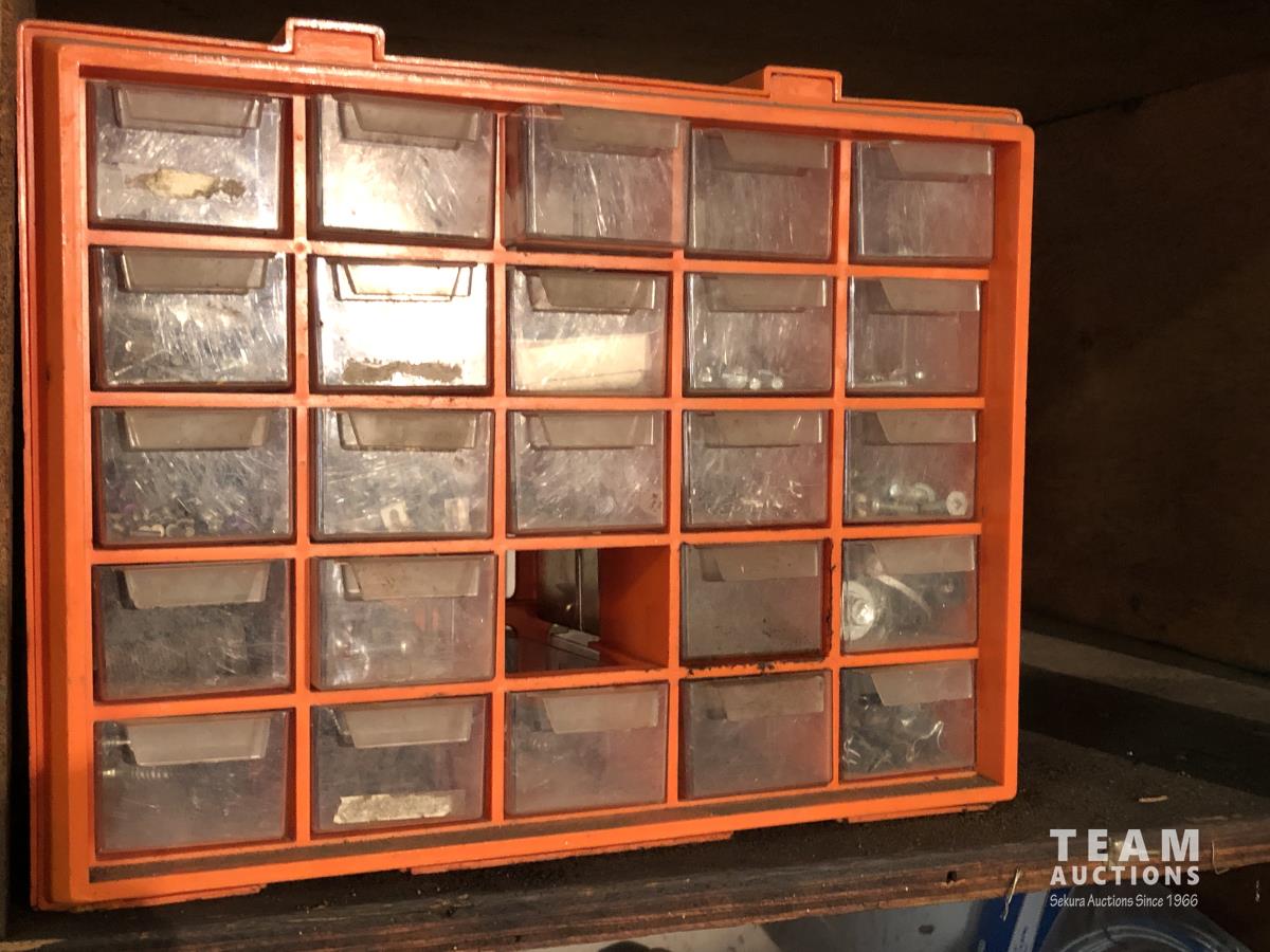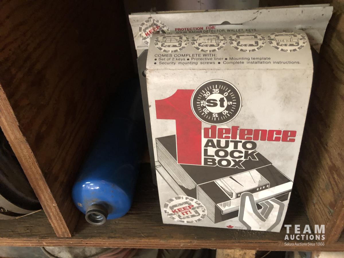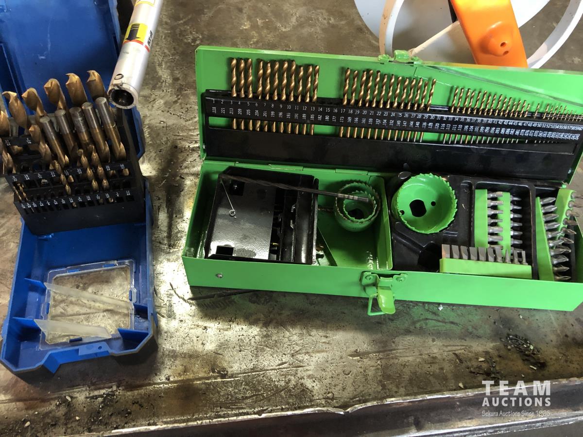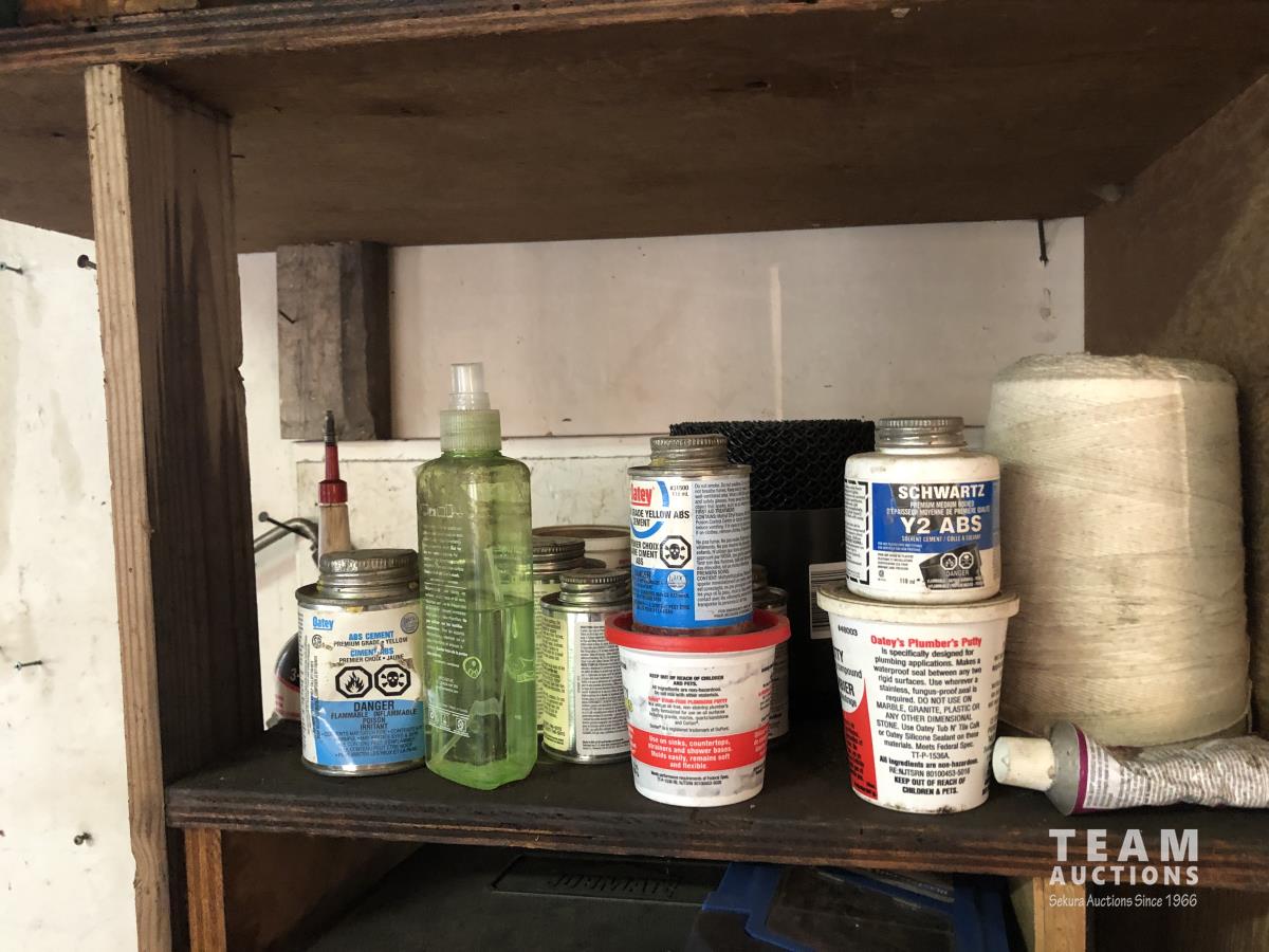 O-rings, drill bits, welding rods, tap and die set, cotter pins, grinder, palm sanders, single phase 1/2 HP motor, skil saw, Coleman stove, lock boxes, regulators
