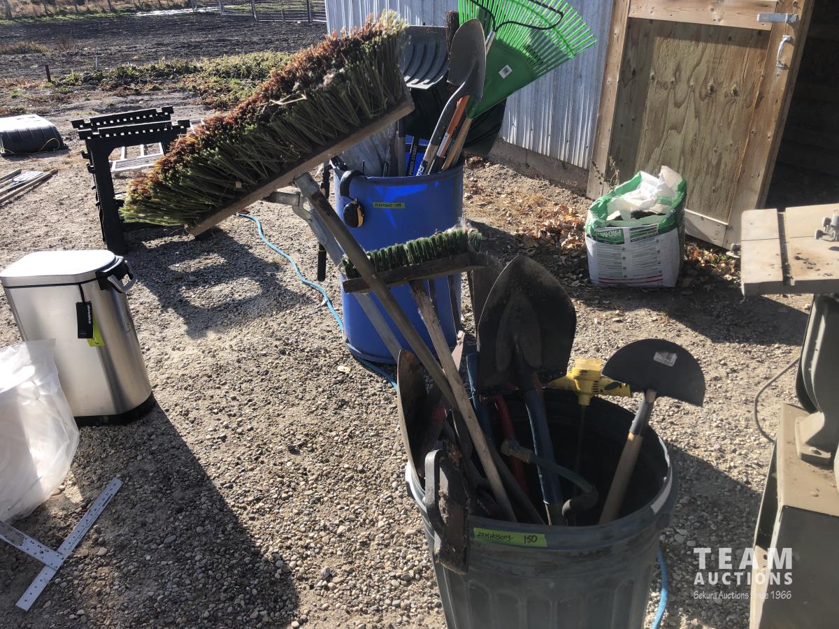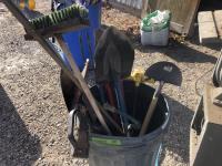 14 Qty of Brooms, Shovels, Axe, Pick Axe, Potato Fork