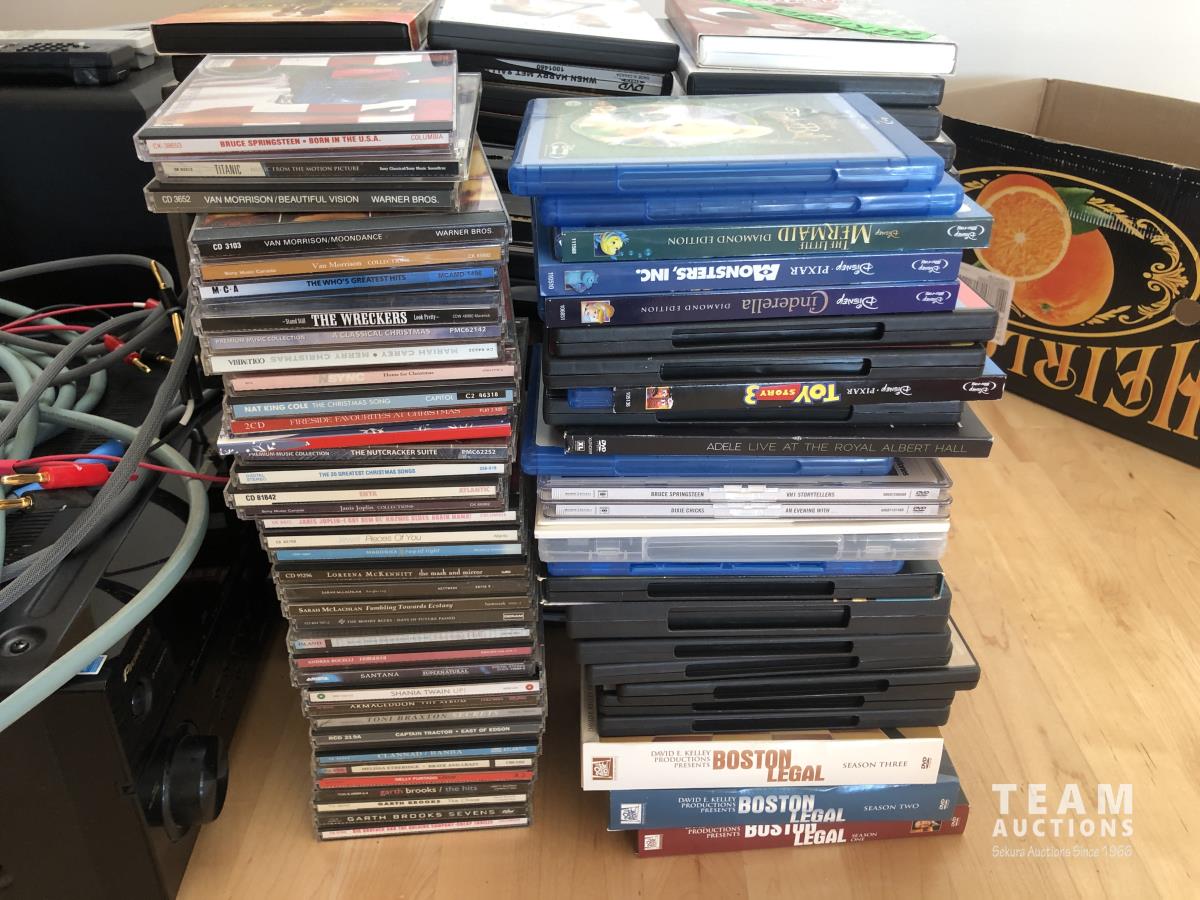 145 Qty of CD's, Blue Rays, DVD'sand VHS