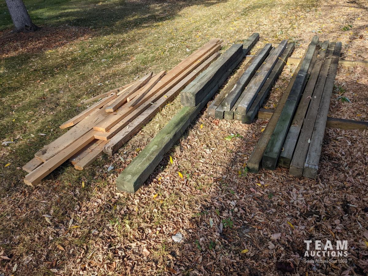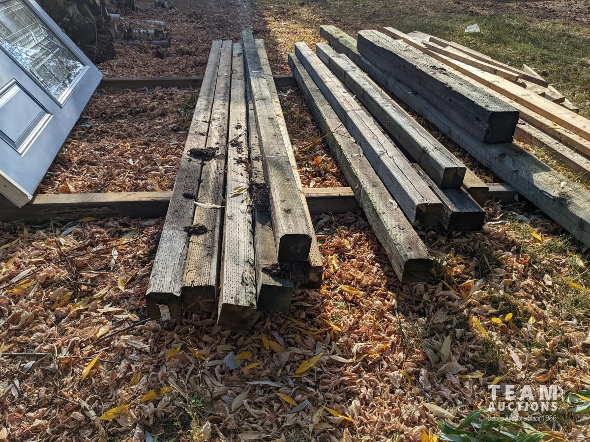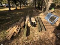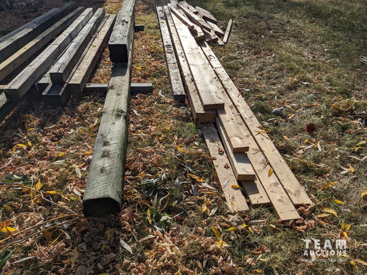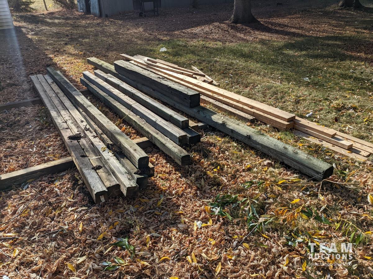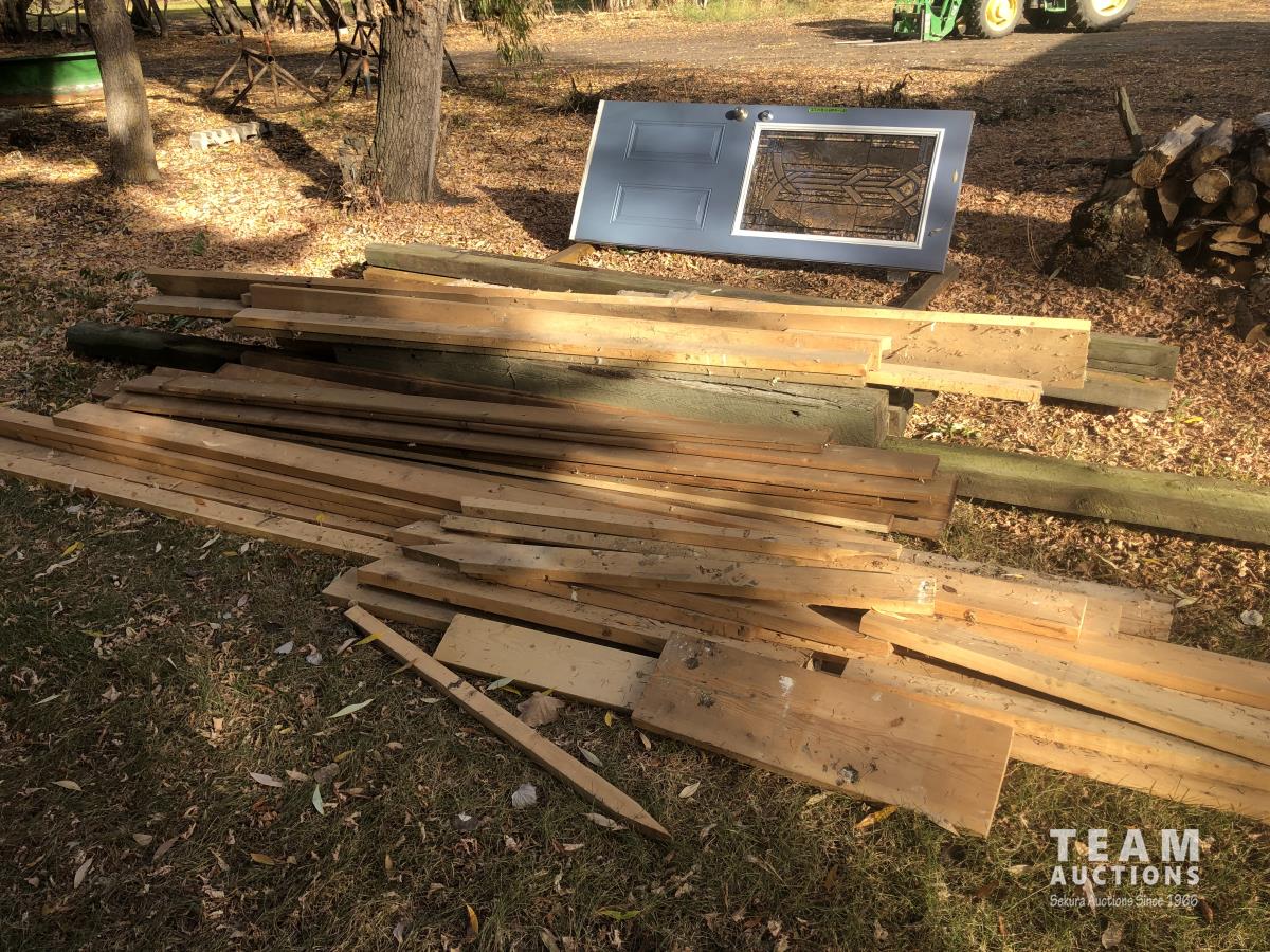 Pressure treated 4X4's, (1) 4X6, (1) short 6X6, various sizes of dimensional lumber, exterior door 32 inch X 79 inch