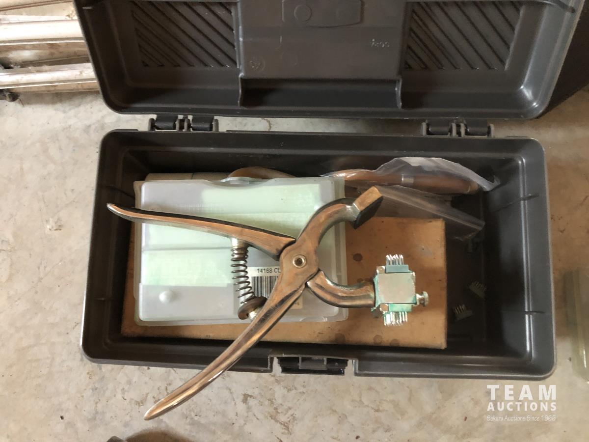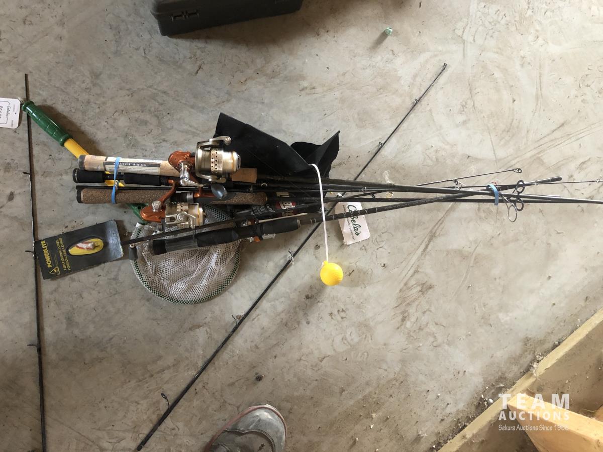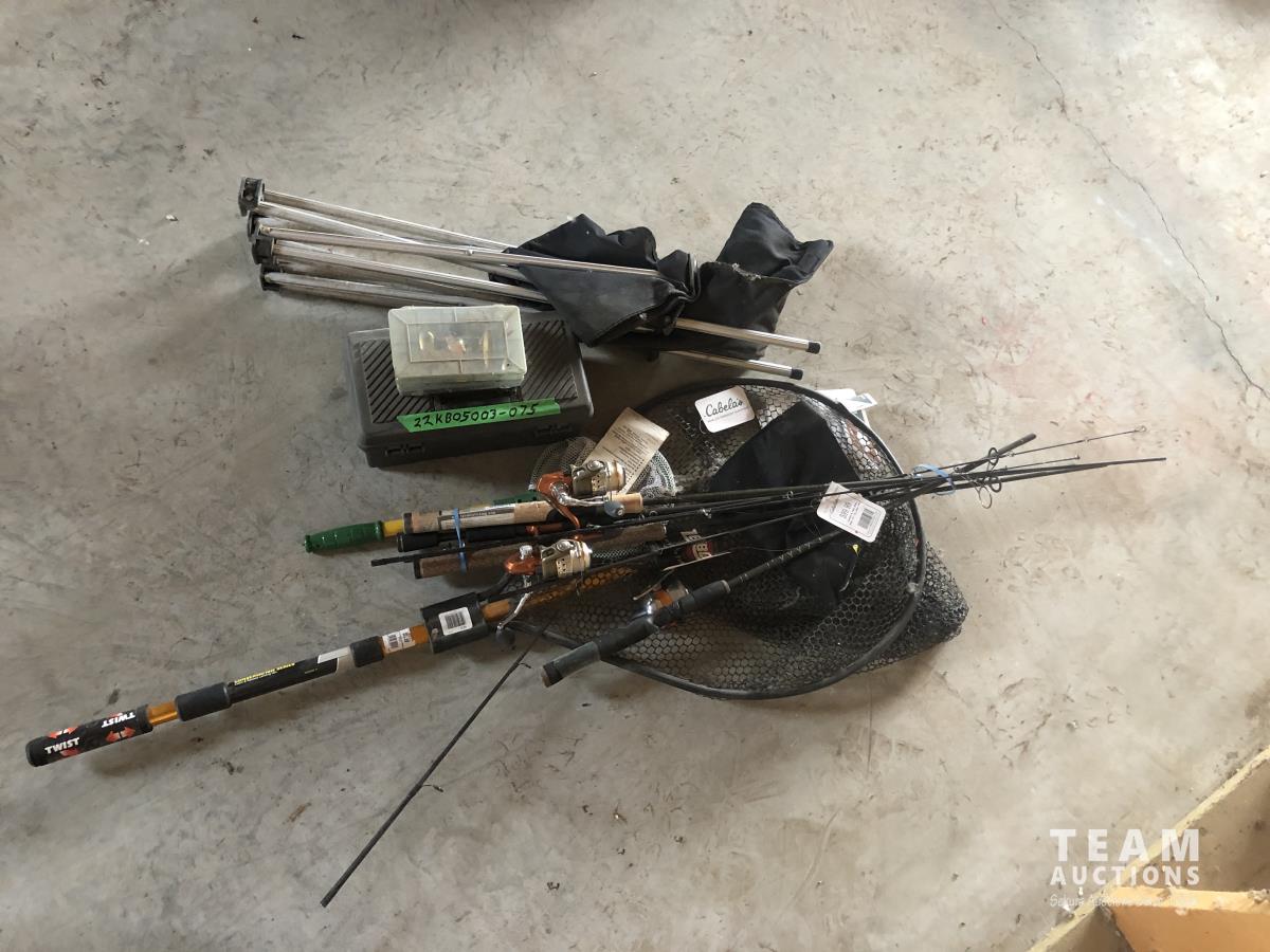 Rods, net, minnow net and chair, dog tattoo kit