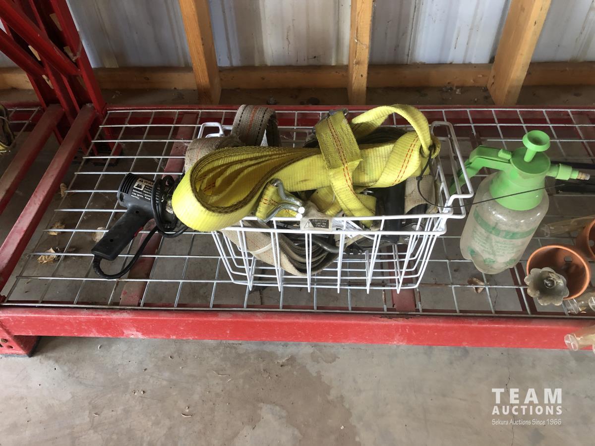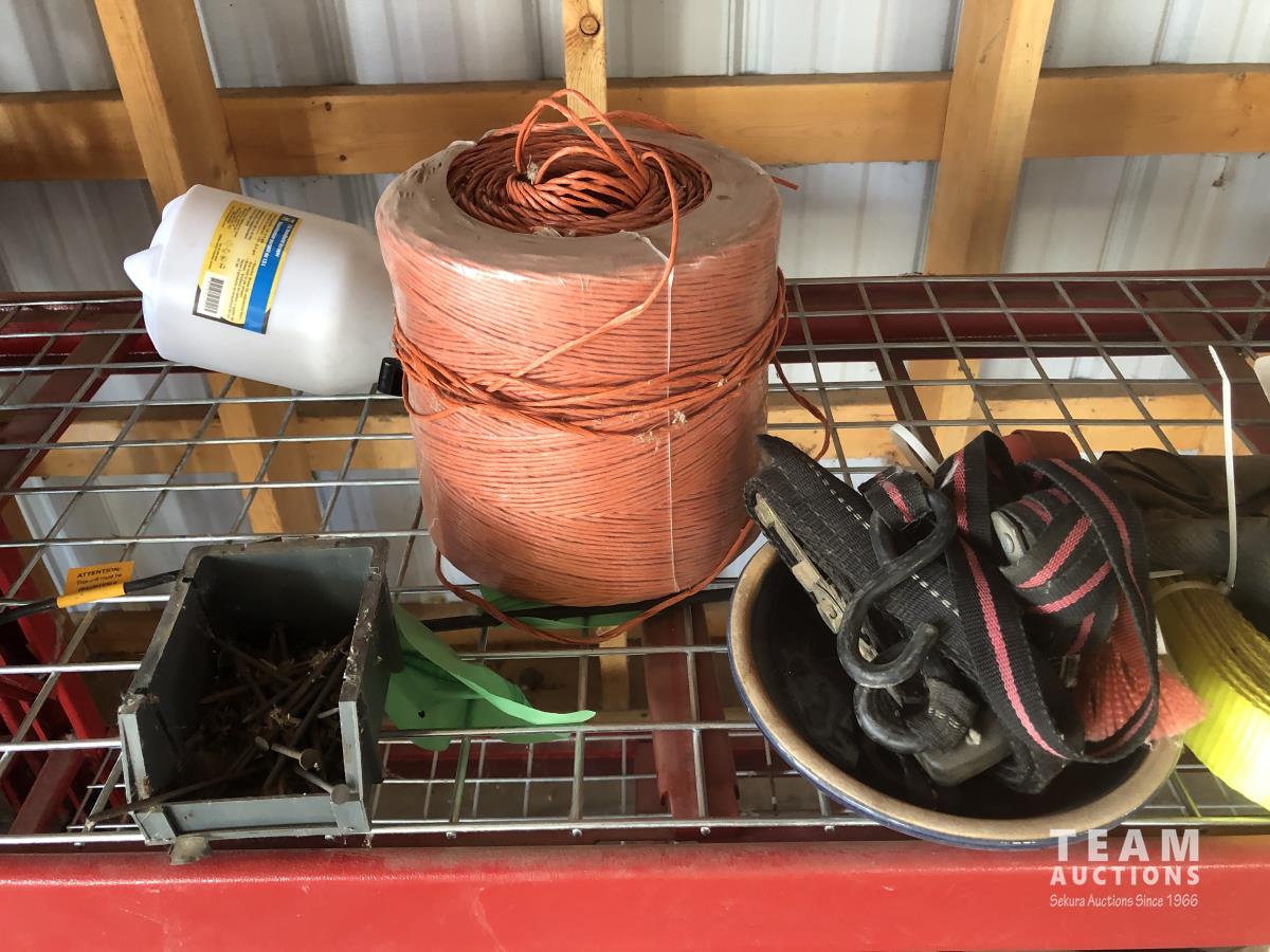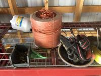 Bale twine, straps, lights, bird houses, lawn chairs, air impacts, space heater, tripod, lamp, knee pads, spray jug, extension cord