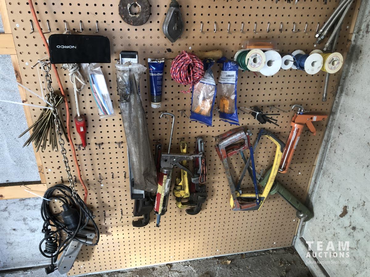 Hand tools, electrical wire, caulking guns, miscellaneous items