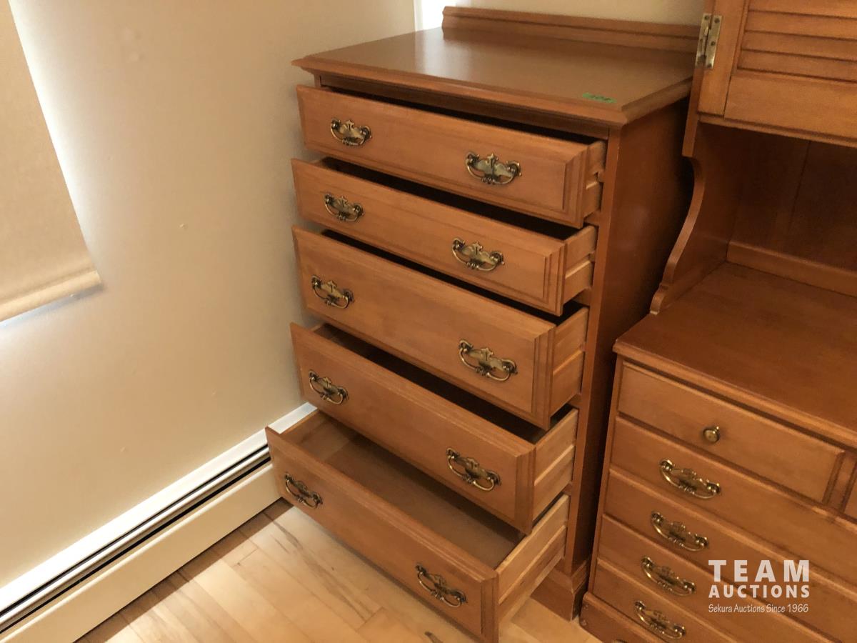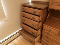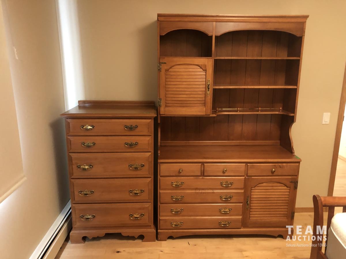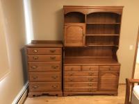 Queen size mattress, bed head and foot board, (2) dressers, hutch, end table