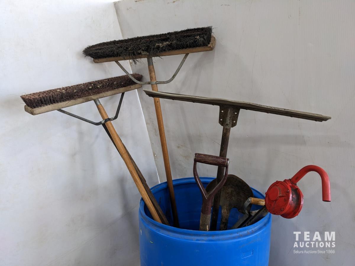 1439 (2) Brooms, Squeegee, Pump, Shovel