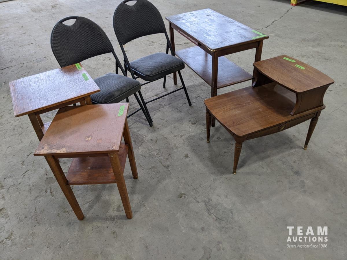 1251 (2) Folding Chairs and (4) Wooden Side Tables