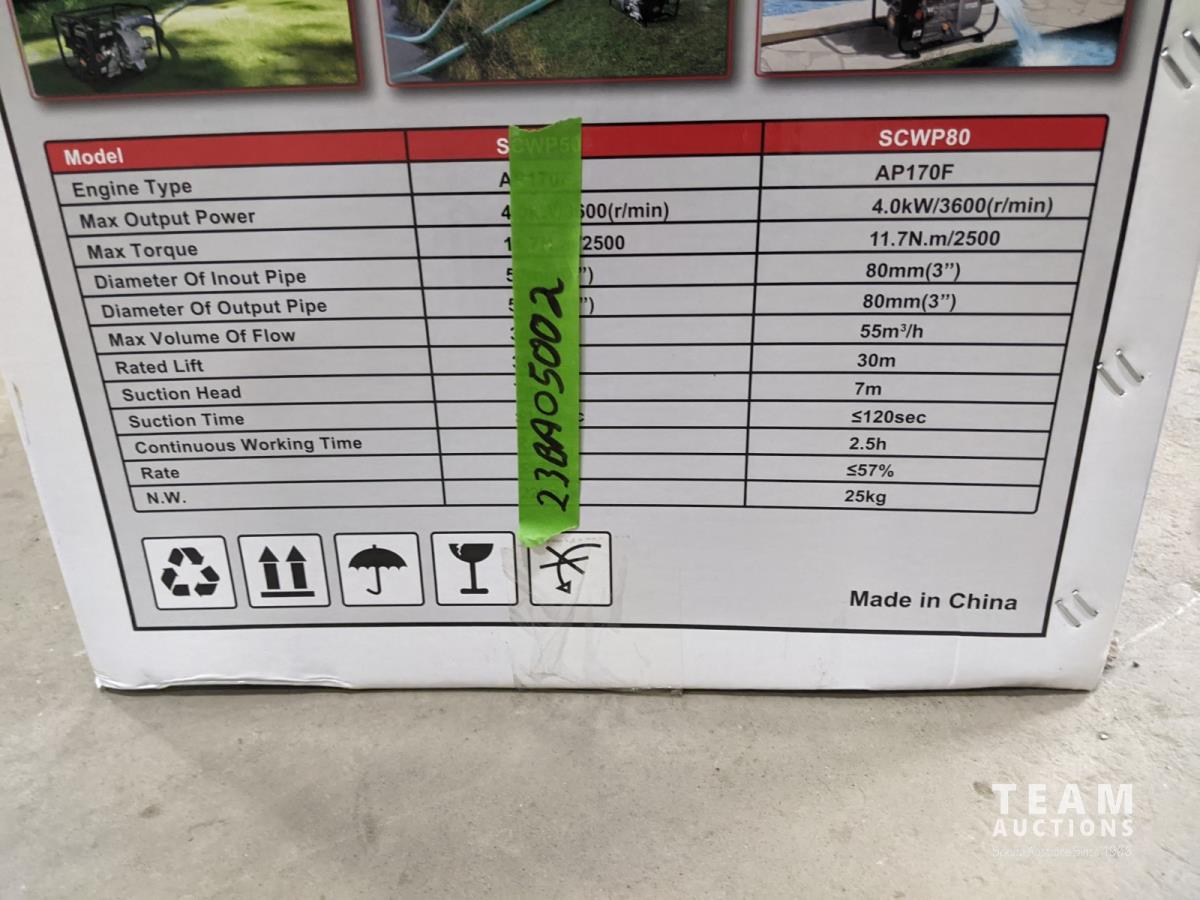 1301 Senci 3 Inch Water Pump with Suction and Discharge Hoses (Unused)