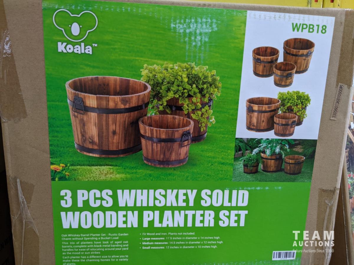 1187 3 Piece Whiskey Barrel Planters (Unused)