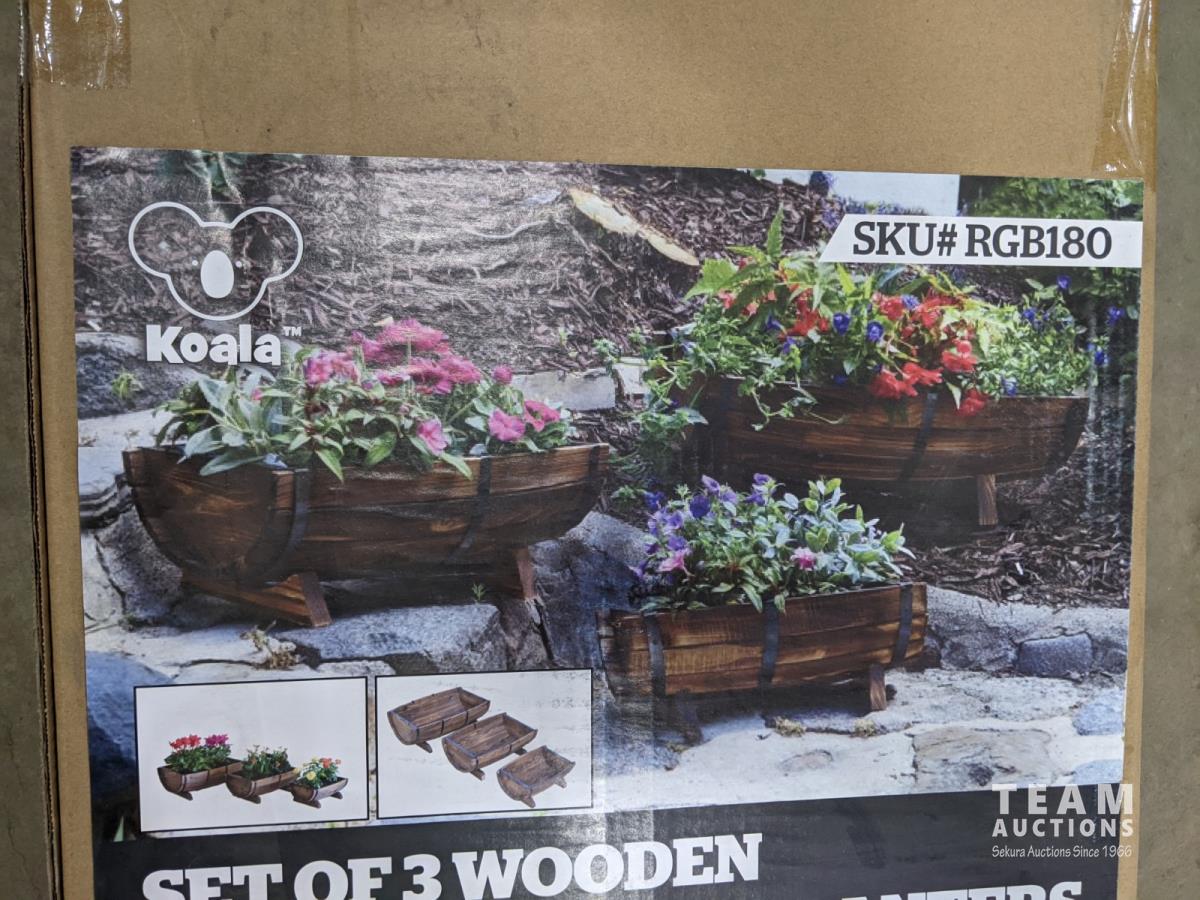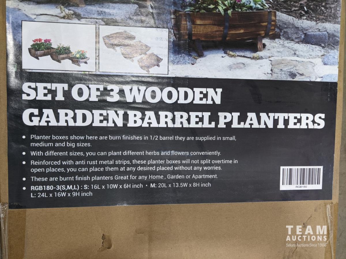 1316 3 Piece Wooden Barrel Garden Planters (Unused)